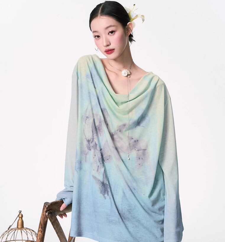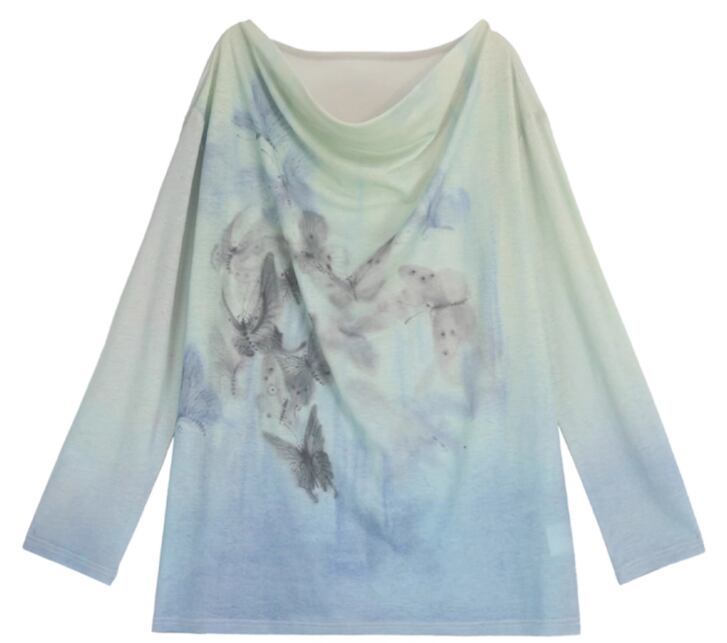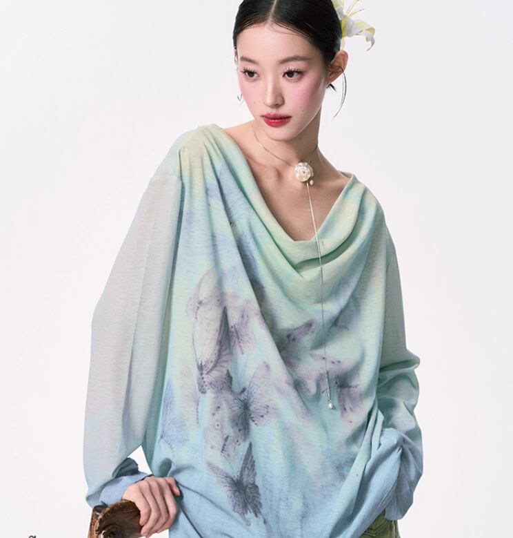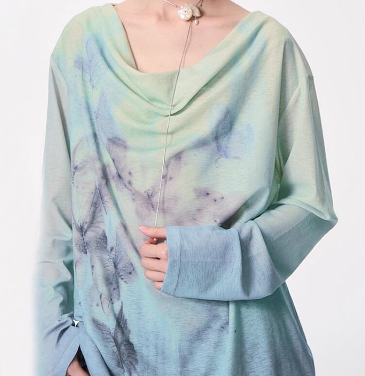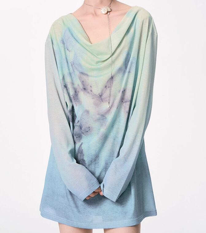レディース トップス ロンT シャツ ブラウス 丈長 長袖 襟なし ワイド オーバーサイズ フェミニン ストリート バイカラー 薄手 かわいい 大人可愛い きれいめ カジュアル 上品 おしゃれ こなれ感 ラフ ガーリー 個性的 モード系 エレガント 主役級 存在感 とろみ感 抜け感 ラブリー キュート 都会的 クラシカル ベーシック アクティブ ナチュラル 蝶 春 秋 学生 通学 デート お出かけ お泊まり アウトドア キャンプ イベント 旅行 海 ビーチ 公園 女子会 休日 カフェ インスタ映え