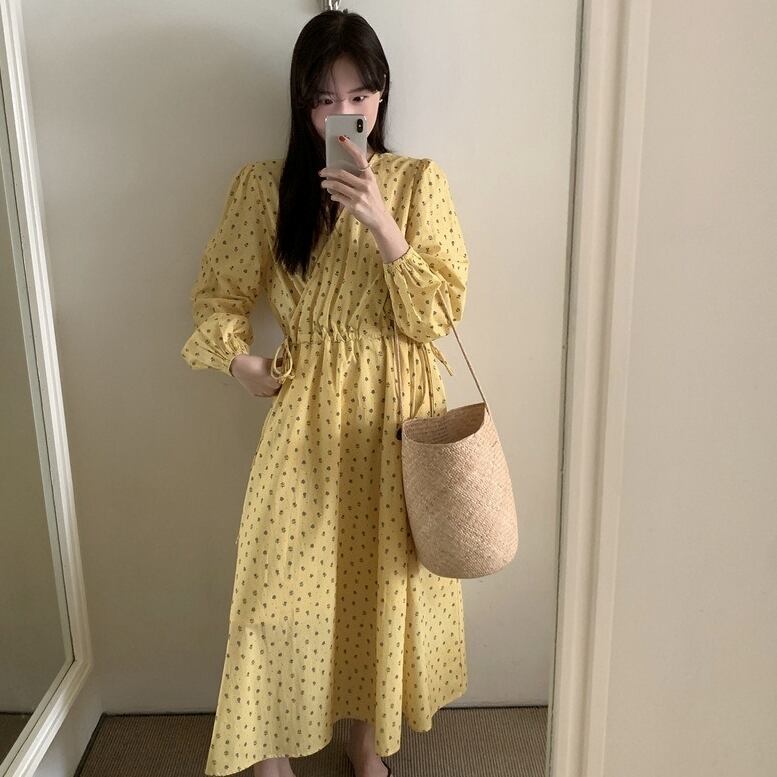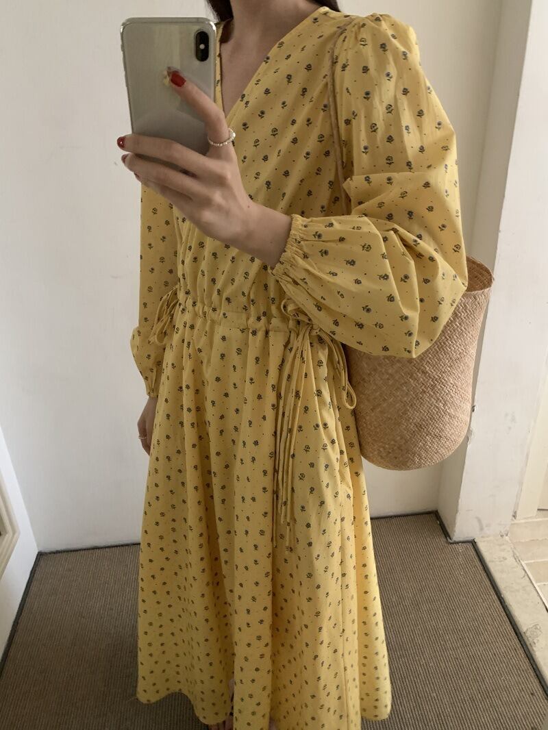 ワンピース ロングワンピース 長袖 Vネック ウエストマーク サイドリボン フレアスカート かわいい 大人可愛い きれいめ シンプル 上品 おしゃれ かっこいい カジュアル こなれ感 個性的 主役級 存在感 抜け感 春 夏 ベーシック ナチュラル キュート フェミニン ガーリー 清楚 ドット柄 女性用 レディース ママ OL 通勤 オフィス 学生 通学 デート お出かけ お泊まり 女子会 旅行 休日 カフェ ショッピング コンパ 普段使い デイリー 着回し 重ね着 脚長 ワンサイズ トレンド モテ
