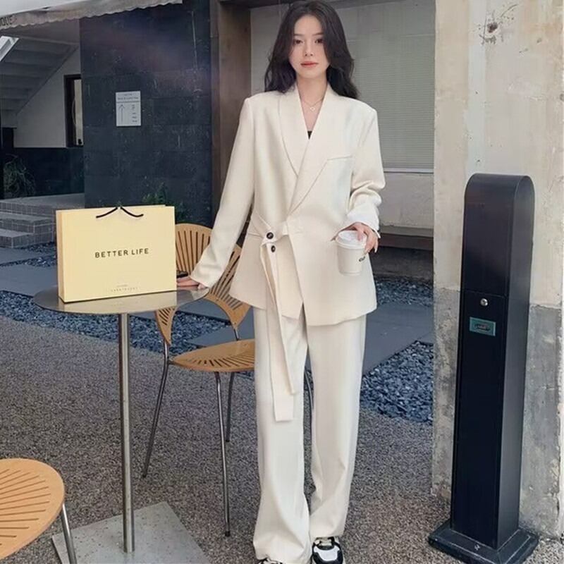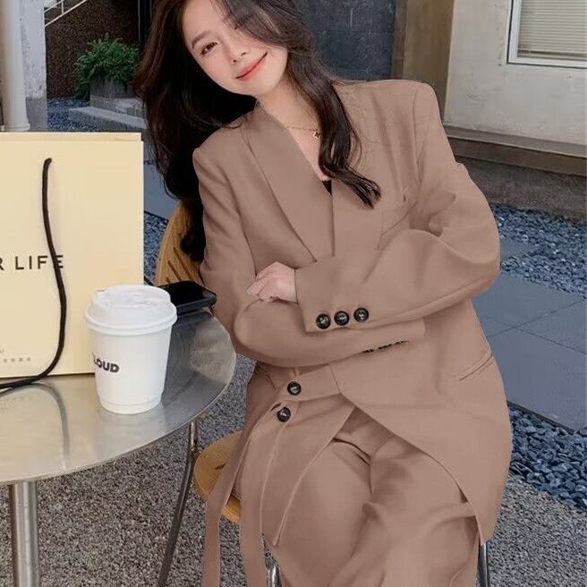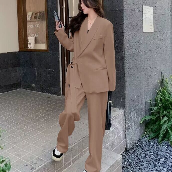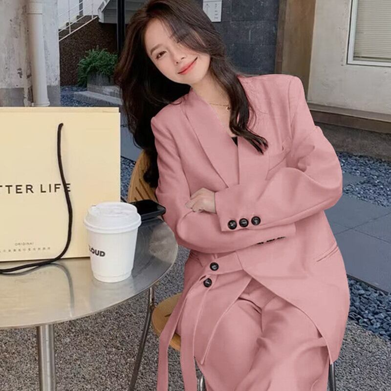 2点セット セットアップ スーツ ジャケット 長袖 襟付き 前開き ボタン ウエストマーク ロングパンツ ハイウエスト ポケット かわいい 大人可愛い きれいめ シンプル 上品 おしゃれ かっこいい カジュアル こなれ感 個性的 主役級 存在感 抜け感 ベーシック ナチュラル キュート クール フォーマル 無地 女性用 レディース ママ OL 通勤 オフィス 学生 通学 デート お出かけ お泊まり 女子会 旅行 カフェ ショッピング 普段使い デイリー 着回し 重ね着 S M L XL 2XL 3XL