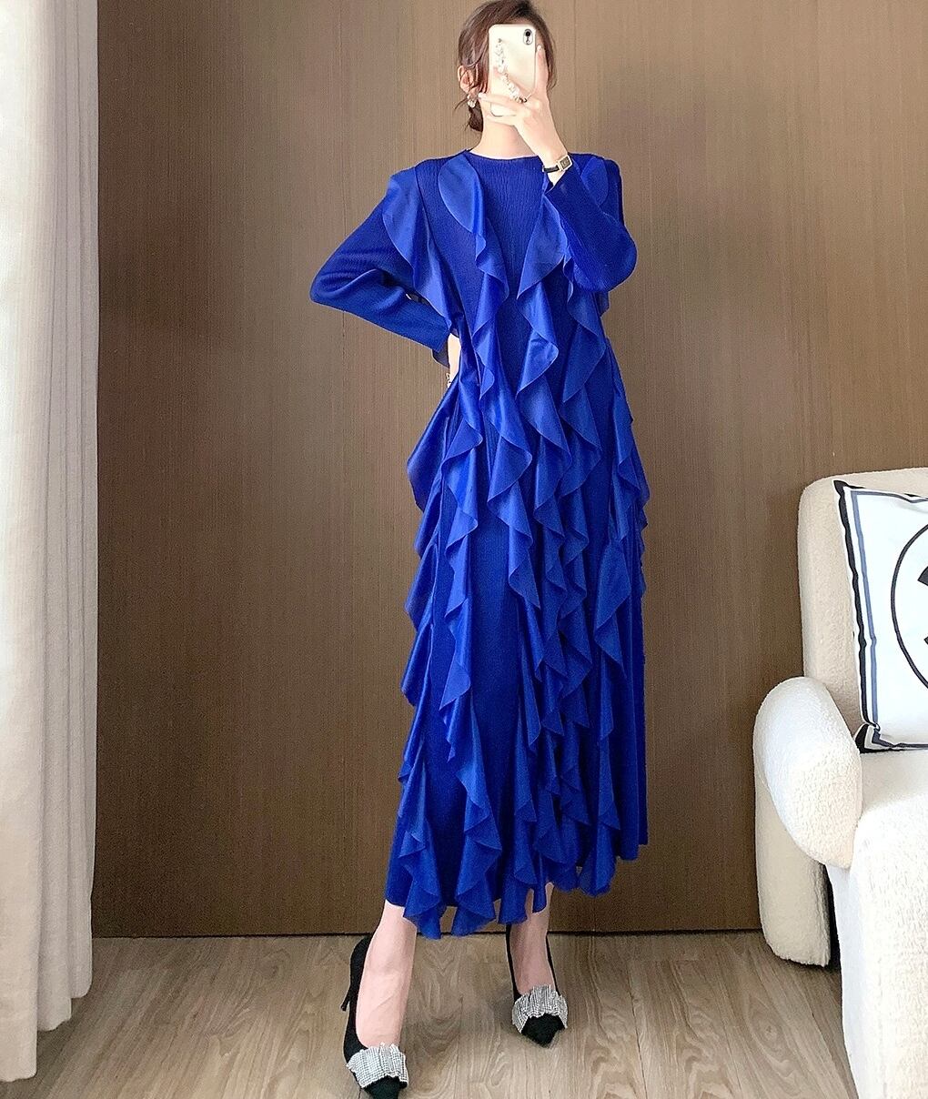 ワンピース ロングワンピース 長袖 クルーネック フリル デザイン重視 ロング丈 セミフレア かわいい 大人可愛い きれいめ シンプル 上品 おしゃれ かっこいい カジュアル こなれ感 個性的 主役級 存在感 抜け感 オールシーズン ベーシック ナチュラル クール エレガント 無地 女性用 レディース ママ OL デート お出かけ お泊まり 女子会 旅行 休日 カフェ ショッピング コンパ 普段使い デイリー パーティー 二次会 ディナー ホテル イベント 着回し 重ね着 脚長 ワンサイズ モテ トレンド