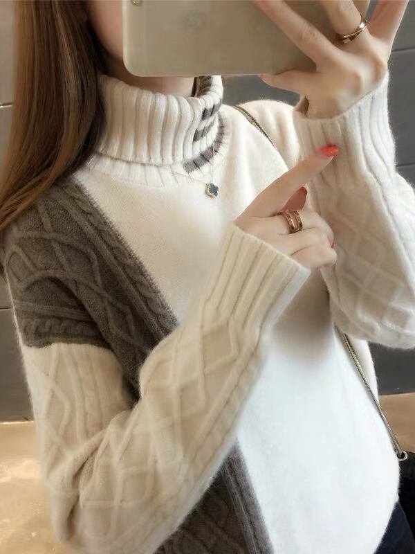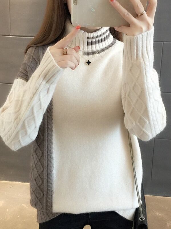 レディース トップス ニット セーター 長袖 ボリューム袖 萌袖 ハイネック タートルネック ストリート ケーブルニット 伸縮性 コンサバ バイカラー ニット ケーブルニット かわいい きれいめ シンプル カジュアル おしゃれ かっこいい こなれ感 ラフ メンズライク 個性的 クール 主役級 春 秋 冬 ママ カップル 学生 学校 通学 デート お出かけ お泊まり 旅行 女子会 休日 カフェ お揃い 双子 暖かい 防寒 普段使い モテ フリーサイズ 白 ホワイト ダークグレー カーキ ネイビー