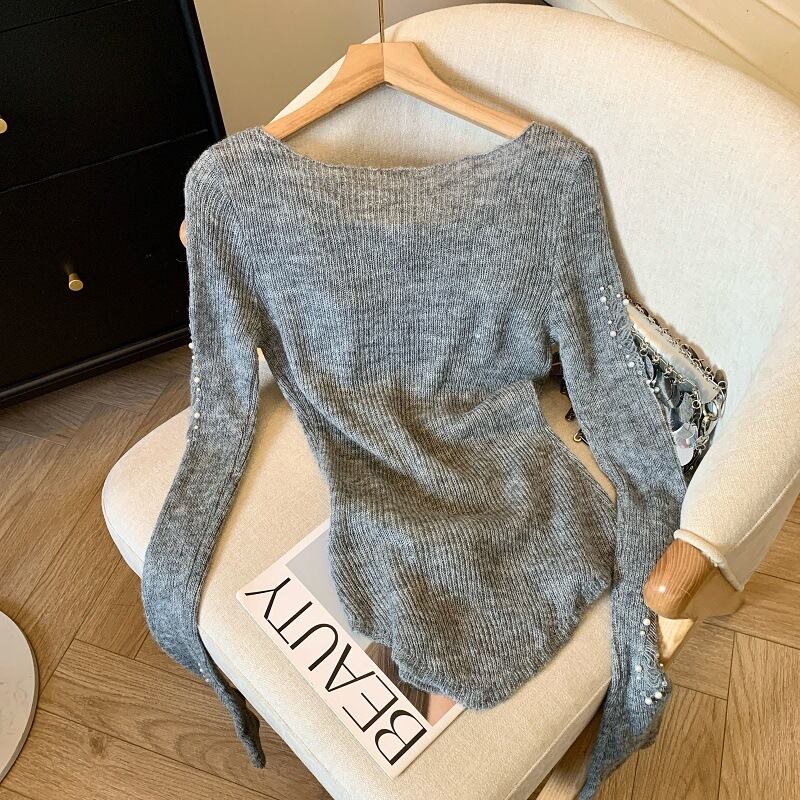 トップス ニットソー 長袖 ラウンドネック 萌え袖 プルオーバー ミディアム丈 タイト フェイクパール 立体モチーフ かわいい 大人可愛い きれいめ シンプル 上品 おしゃれ かっこいい カジュアル こなれ感 個性的 主役級 存在感 抜け感 春 秋 冬 ベーシック ナチュラル フフェミニン ガーリー 無地 女性用 レディース ママ OL 通勤 オフィス 学生 通学 デート お出かけ お泊まり 女子会 旅行 休日 カフェ ショッピング コンパ ディナー 普段使い デイリー 着回し 重ね着 ワンサイズ モテ
