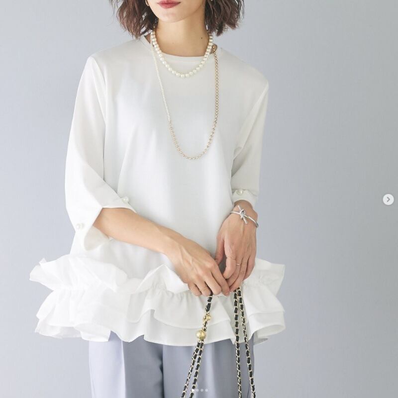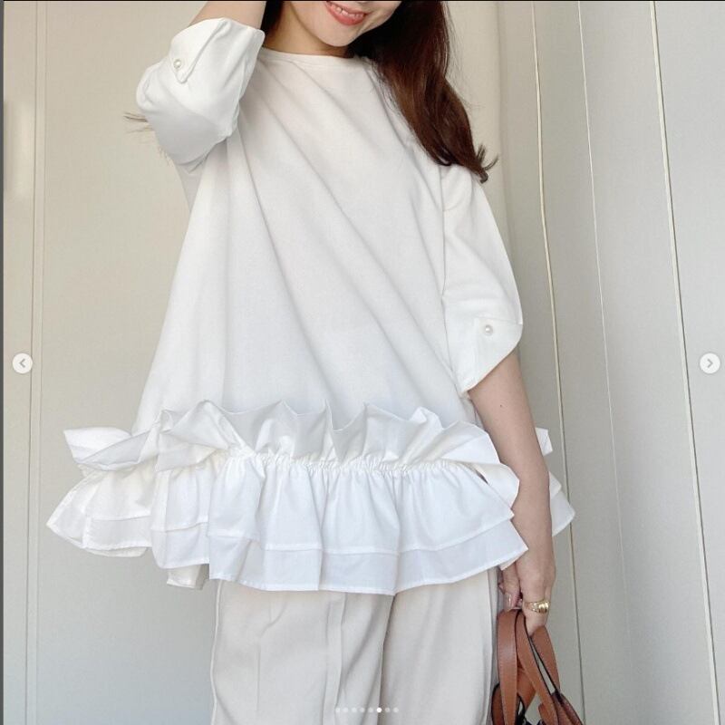 レディース トップス ブラウス 7分袖 Uネック 襟なし フレア 切り替え フリル コンサバ 薄手 かわいい 大人可愛い きれいめ シンプル カジュアル 上品 おしゃれ こなれ感 個性的 エレガント モダン 主役級 存在感 クラシカル 無地 春 夏 秋 冬 デート お出かけ お泊まり パーティー イベント 旅行 レストラン 公園 女子会 休日 バカンス ガーデン ショッピング 発表会 カフェ フェス お揃い コーデ 美脚 脚長 普段使い 着回し モテ 清楚 フリーサイズ 白 黒