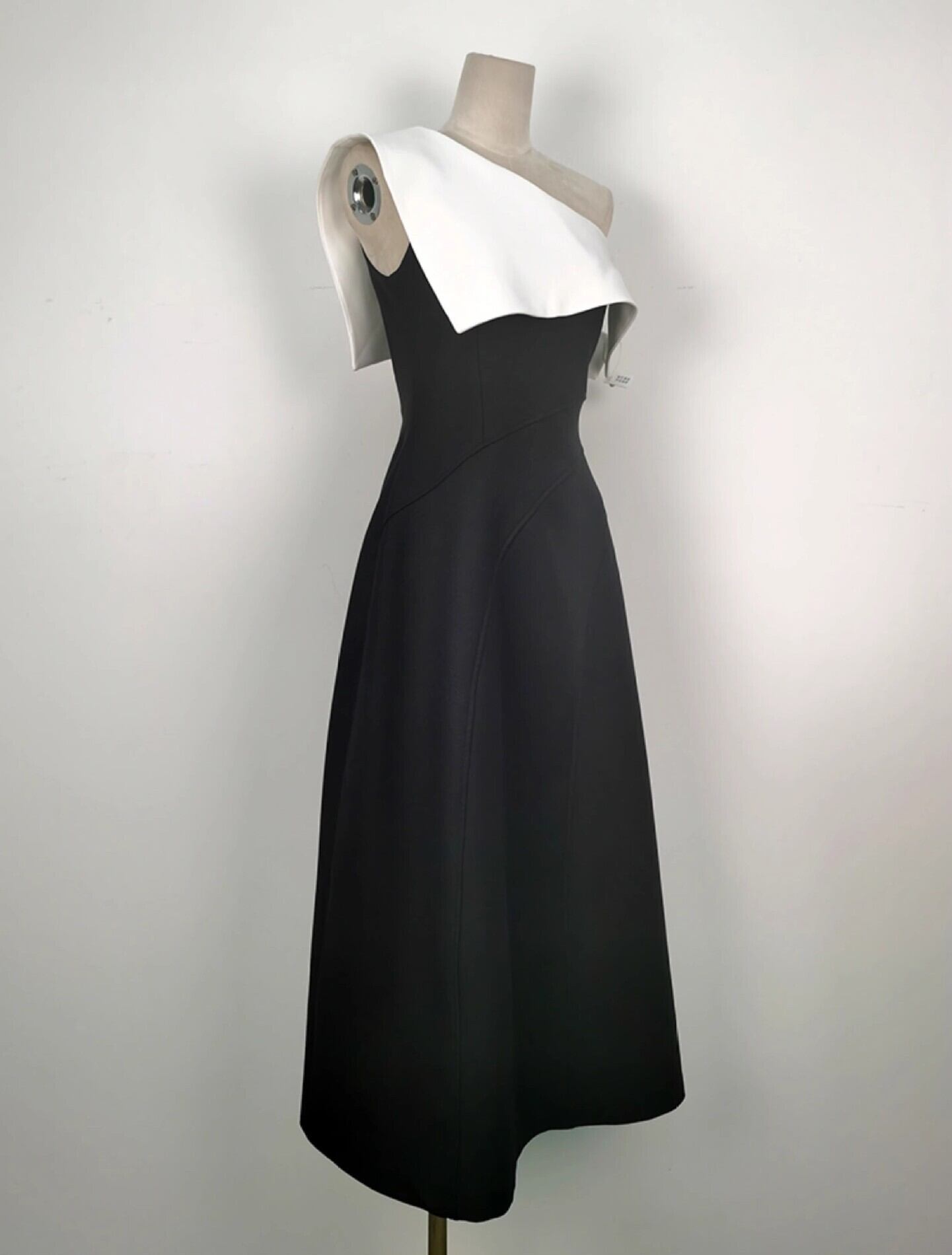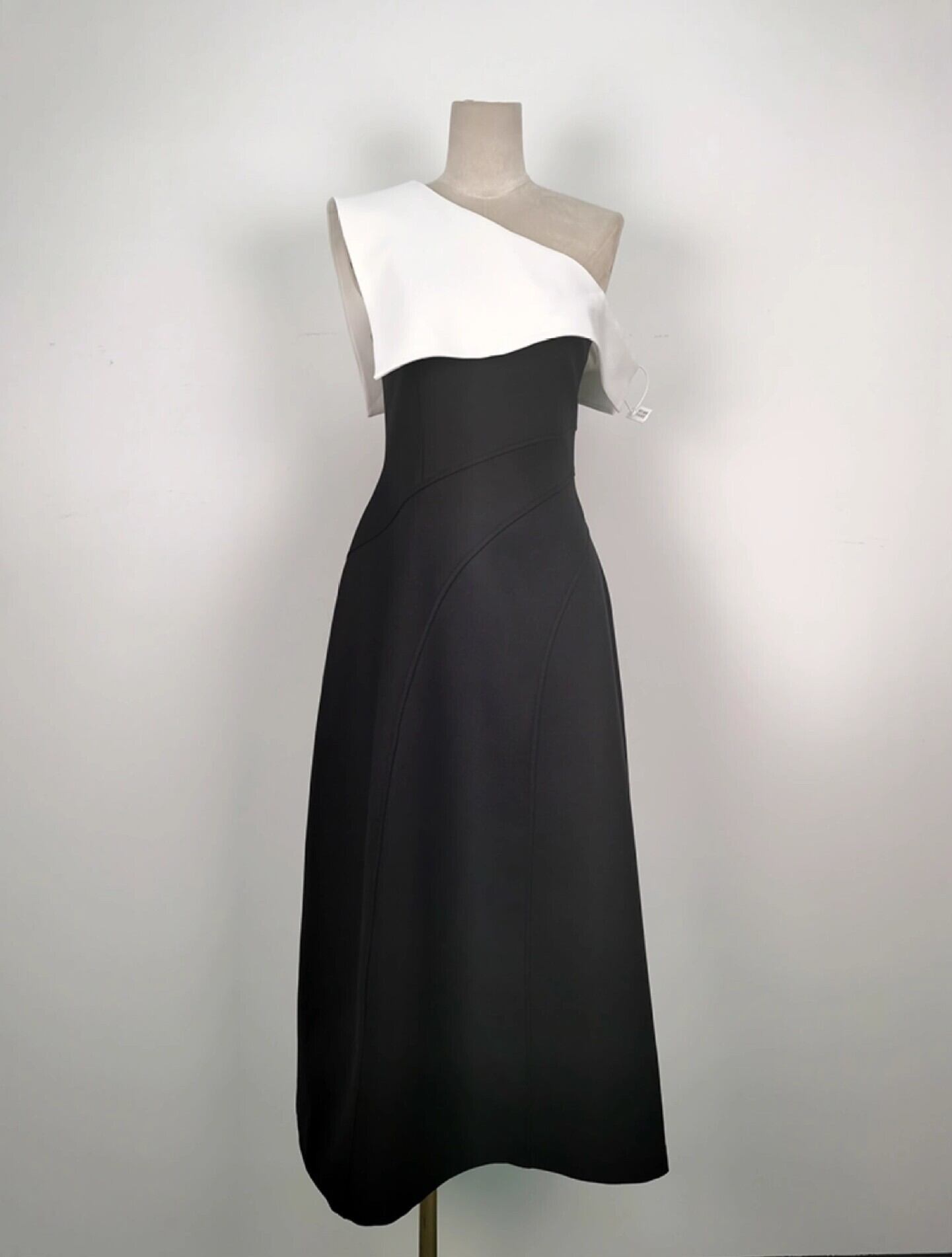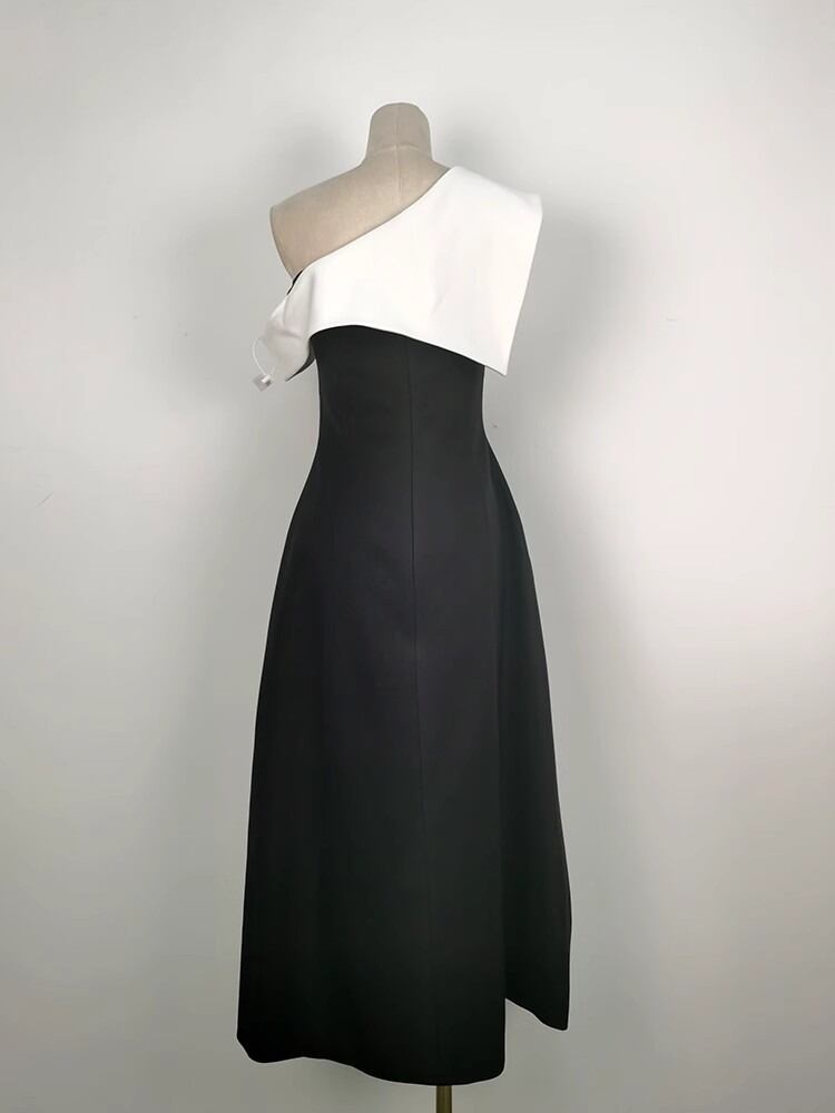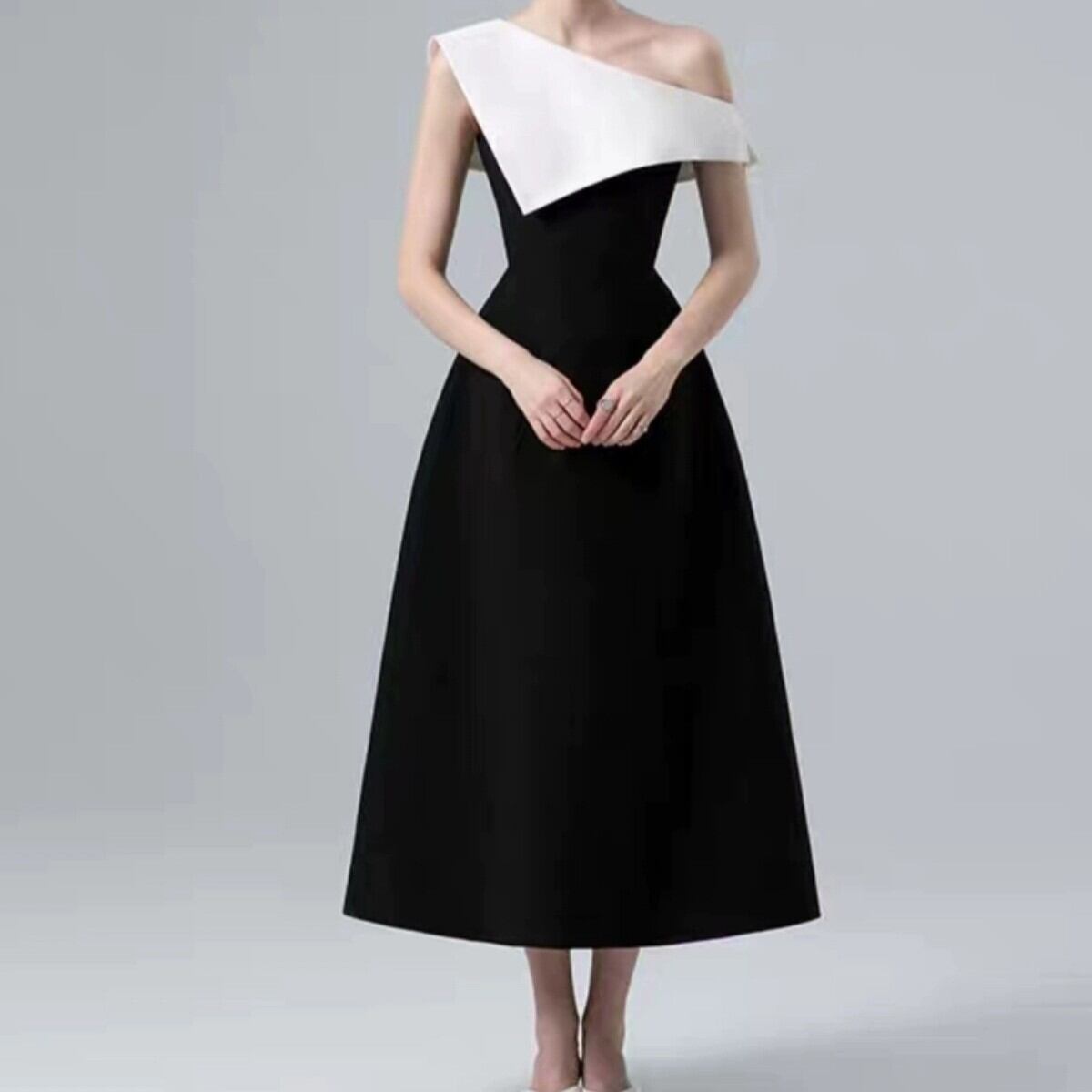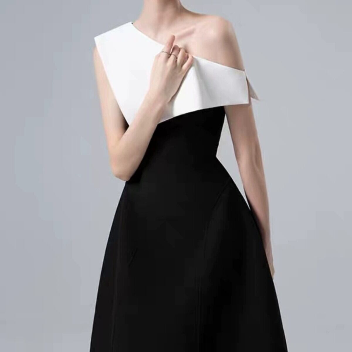 ドレス ワンピース ウェディング パーティー 結婚式 二次会 披露宴 演奏会 発表会 ステージ 舞台 フォーマル 衣装 ロング ノースリーブ ワンショル Aライン ファスナー ハイウエスト きれいめ 大人可愛い 上品 おしゃれ かっこいい ガーリー クール エレガント 主役級 存在感 ゴージャス セクシー 華やか 無地 ホテル レストラン 韓国 春 夏 秋 冬 シーズンレス XS S M L XL ブラック