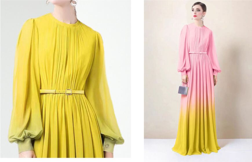 ドレス パーティー 二次会 披露宴 演奏会 発表会 ロング 長袖 パフスリーブ クルーネック 襟なし エンパイア プリーツ シフォン ウエストマーク シアー 薄手 きれいめ 大人可愛い おしゃれ 存在感 ナチュラル 無地 バイカラー パーティー イベント リゾート ホテル レストラン 冬 二次会 披露宴 パーティー 謝恩会 2XL M L XL 黄色 ピンク ブルー