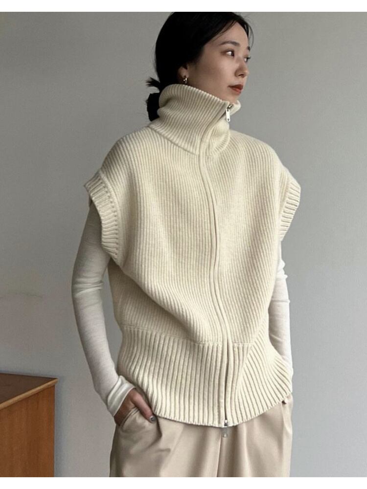レディース トップス ベスト ニットカーディガン ミディアム丈 7分袖 タートルネック Aライン ダブルジップ ファスナー リブニット 編み込み 中厚手 ニット ウール きれいめ シンプル カジュアル レトロ 個性的 存在感 無地 秋 冬 通勤 学校 通学 お出かけ イベント 休日 重ね着 暖かい 防寒 普段使い トレンド S M L 黒 オフホワイト