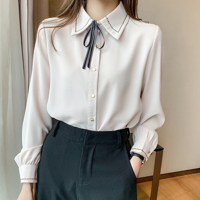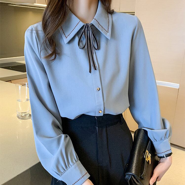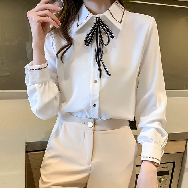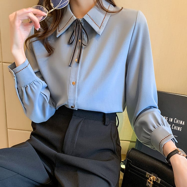 クラシカルガーリーな雰囲気が可愛い、リボンタイシャツブラウス。