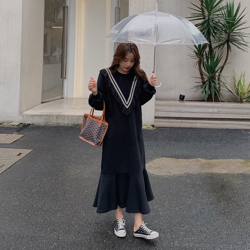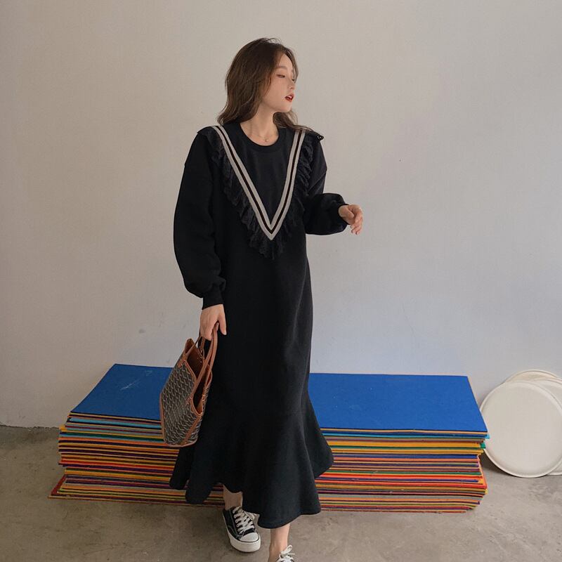 レディース ワンピース ティアード ロング 長袖 パフスリーブ クルーネック ストレート プリーツ レース 切り替えデザイン クロスボーダー コットン ニット 大人可愛い カジュアル おしゃれ レトロ 個性的 都会的 無地 春 秋 ロングシーズン デート お出かけ 旅行 ショッピング 楽ちん 普段使い トレンド S M L XL 黒