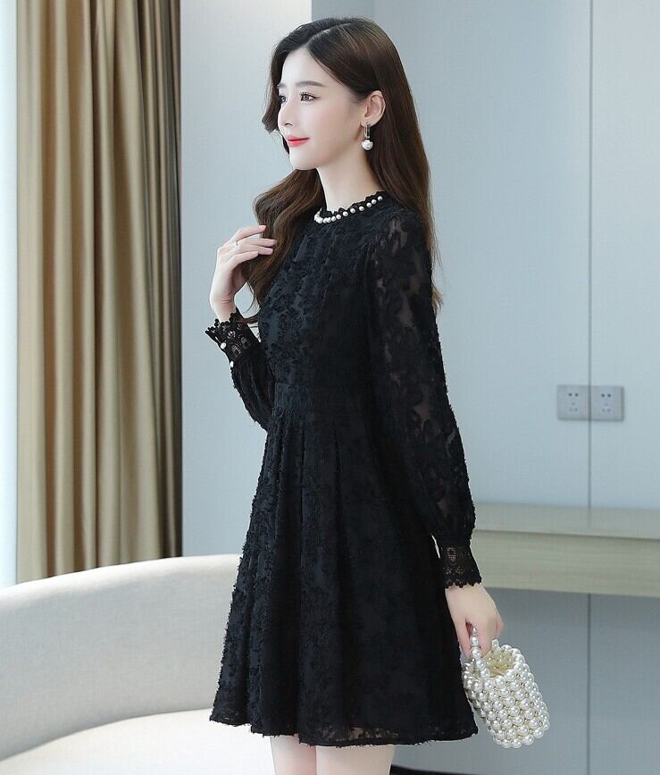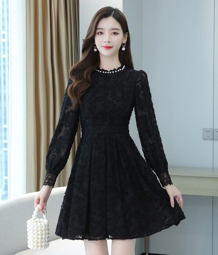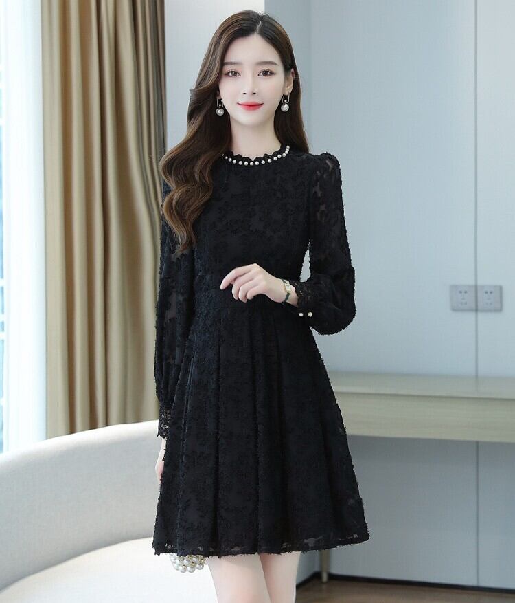 ドレス パーティー 二次会 演奏会 発表会 ステージ ミニ 長袖 ランタンスリーブ クルーネック プリンセスライン Aライン 刺繍 シフォン ウエストマーク ハイウエスト ウエストスリム ビジュー シフォン 大人可愛い 上品 おしゃれ 存在感 エレガント 花柄 パーティー イベント リゾート ホテル 光沢感 春 パーティー 演奏会 発表会 M L XL 2XL 3XL 黒 ベージュ