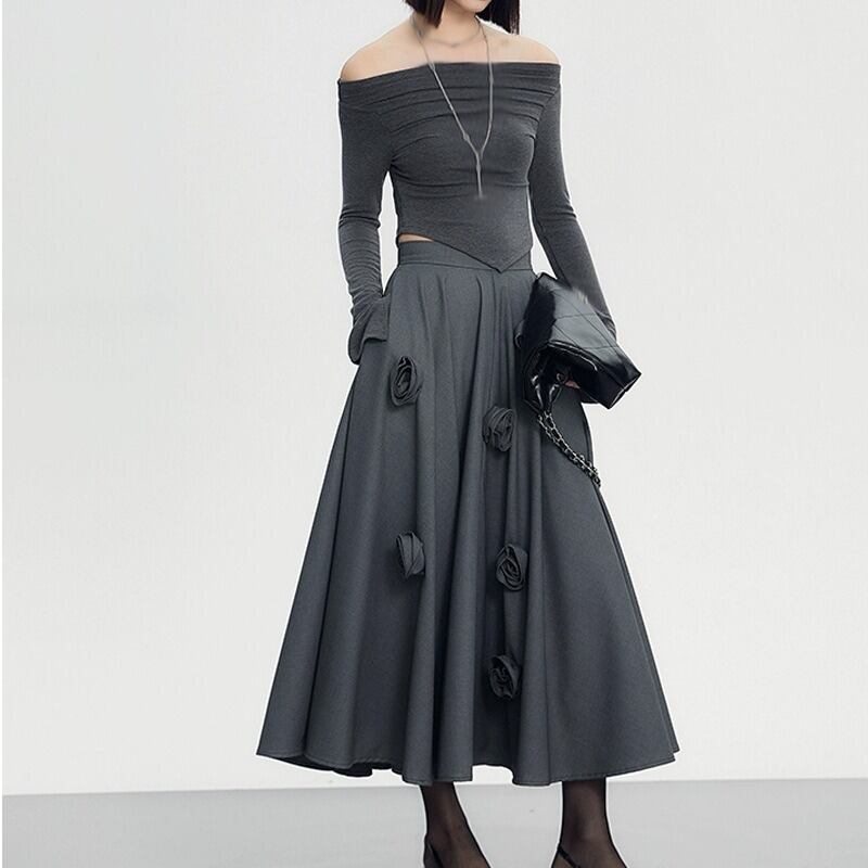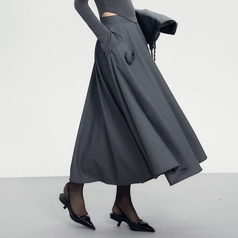 レディース スカート ロング ファスナー ハイウエスト 大人可愛い きれいめ おしゃれ かっこいい ラフ ガーリー クール エレガント フォーマル 都会的 ロマンティック 花柄 秋 冬 通勤 デート お出かけ お泊まり パーティー イベント 旅行 レストラン 公園 女子会 休日 ホテル ショッピング コンサート ライブ カフェ 韓国 コーデ 楽ちん プレゼント 脚長 普段使い 着回し モテ 清楚 インスタ映え S M L グレー