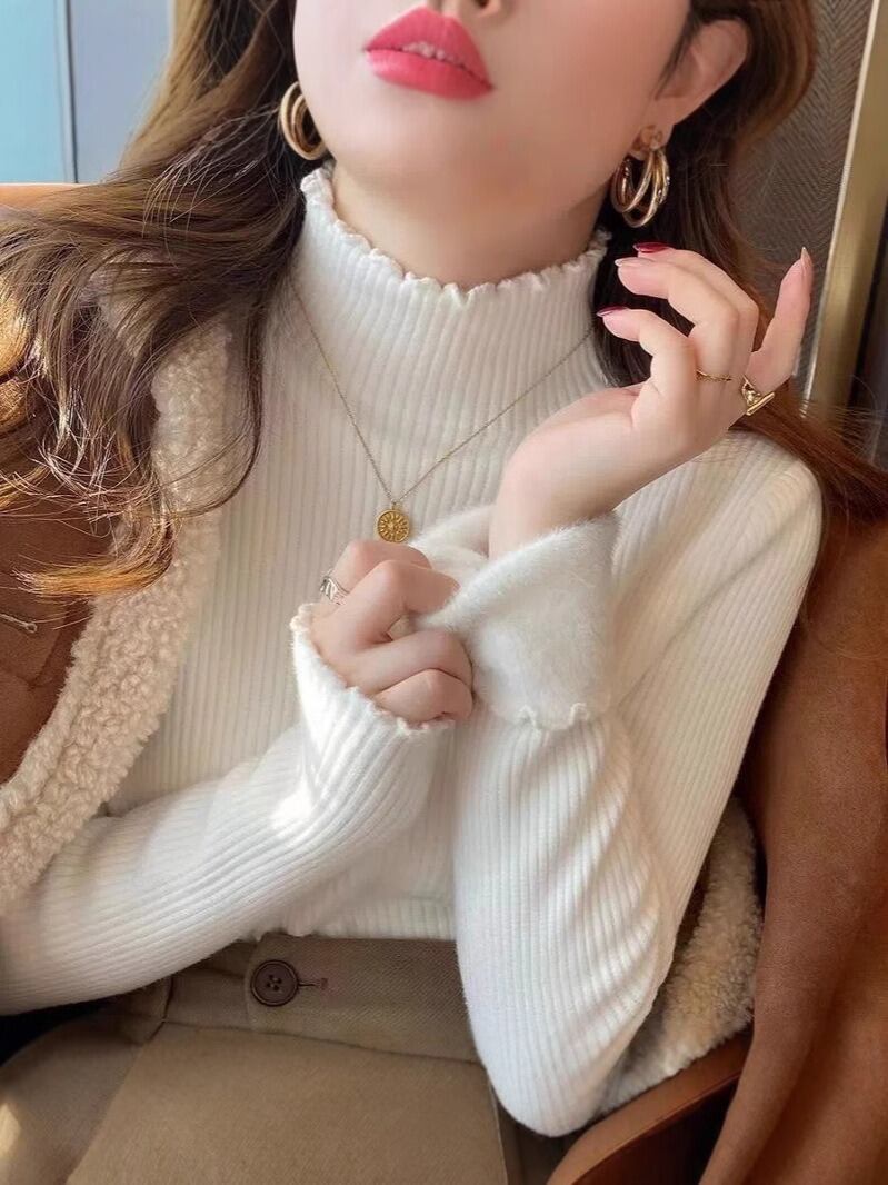 トップス ニットソー 長袖 ハイネック プルオーバー ミディアム丈 フリル ニット 裏起毛 かわいい 可愛い 大人可愛い きれいめ シンプル 上品 おしゃれ かっこいい カジュアル こなれ感 個性的 主役級 存在感 抜け感 春 秋 ベーシック ナチュラル クール 無地 女性用 レディース OL 通勤 オフィス 学生 通学 デート お出かけ お泊まり 女子会 旅行 アウトドア 休日 カフェ ショッピング コンパ イベント 二次会 普段使い デイリー 着回し 重ね着 S M L XL トレンド モテ