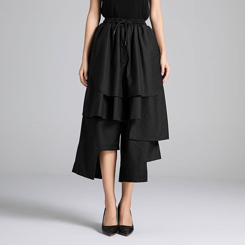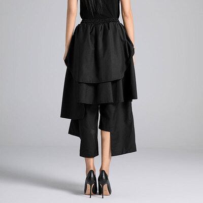 ボトムス パンツ キュロット ウエストゴム ポケット 段フリル アシンメトリー ミモレ丈 かわいい 可愛い 大人可愛い きれいめ シンプル 上品 おしゃれ かっこいい カジュアル こなれ感 個性的 主役級 存在感 抜け感 オールシーズン ベーシック ナチュラル クール メンズライク 無地 女性用 レディース ママ OL 通勤 オフィス 学生 通学 デート お出かけ お泊まり 女子会 旅行 休日 カフェ ショッピング イベント コンパ 普段使い デイリー 着回し 脚長 ワンサイズ トレンド モテ