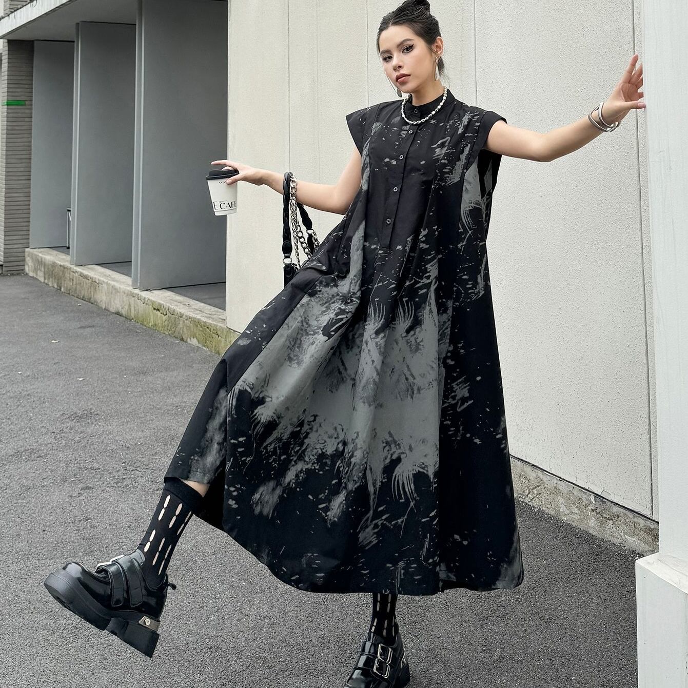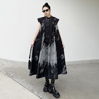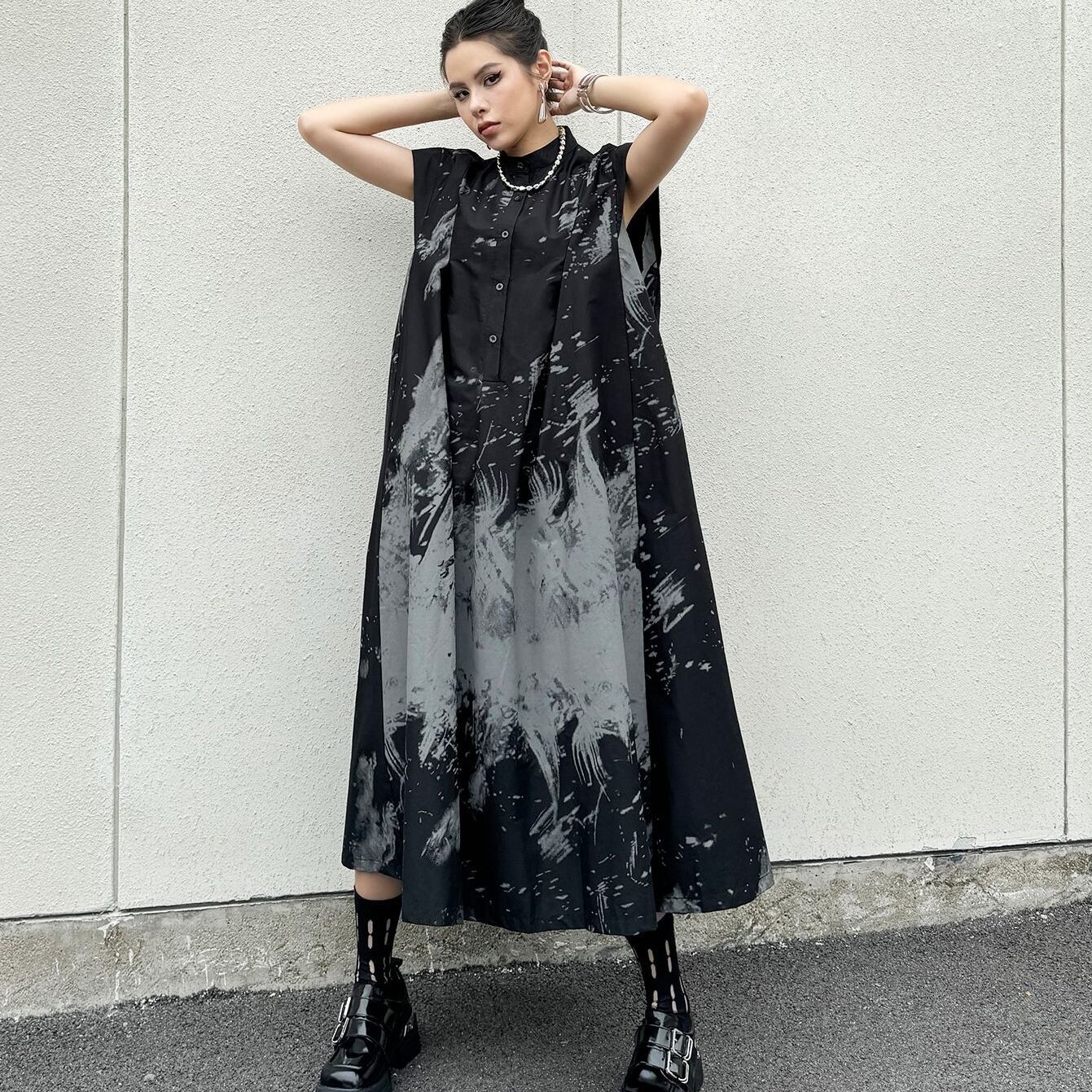 ノースリーブ、ハイネック、ハーフボタンのデザインが、シンプルでありながら上品な印象を与えます。ロング丈のフレアスカートが女性らしさを引き立て、春夏のデイリーコーデに最適です。普段使いはもちろん、デートやカフェ、女子会などのさまざまなシーンで活躍します!色展開 one collar