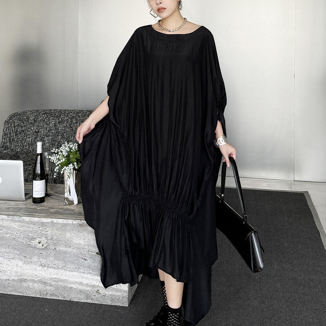 ワンピース ミモレ丈ワンピース 5分袖 ボートネック ドルマンスリーブ アシンメトリー かわいい 大人可愛い きれいめ シンプル 上品 おしゃれ レトロ かっこいい カジュアル こなれ感 個性的 主役級 存在感 抜け感 ベーシック ナチュラル クール エレガント ゴージャス 無地 女性用 レディース ママ デート お出かけ お泊まり 女子会 旅行 休日 カフェ ショッピング パーティー 二次会 衣装 コンパ 普段使い デイリー イベント 着回し 重ね着 脚長 ワンサイズ トレンド モテ ゆったり