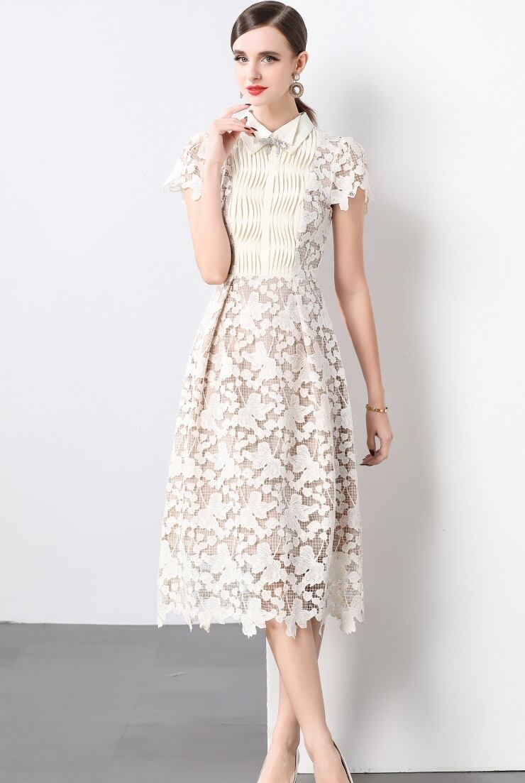 ワンピース ミディアム丈ワンピース 半袖 襟付き 透け感 レース ミディアム丈 かわいい 大人可愛い きれいめ シンプル 上品 おしゃれ レトロ かっこいい カジュアル こなれ感 個性的 主役級 存在感 抜け感 ベーシック ナチュラル キュート エレガント ゴージャス 清楚 リーフ柄 女性用 レディース ママ デート お出かけ お泊まり 女子会 旅行 休日 カフェ ショッピング パーティー 二次会 衣装 コンパ 普段使い デイリー イベント 着回し 重ね着 脚長 S M L XL 2XL トレンド モテ