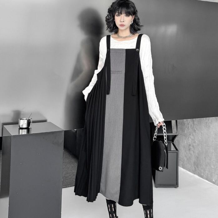 ジャンパースカートの切り替えデザインとプリーツが特徴で、流れるようなシルエットはあなたの魅力を引き立てます。