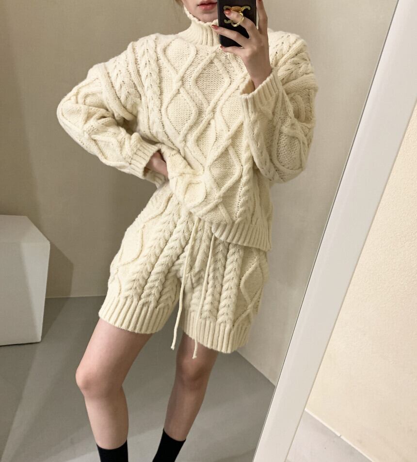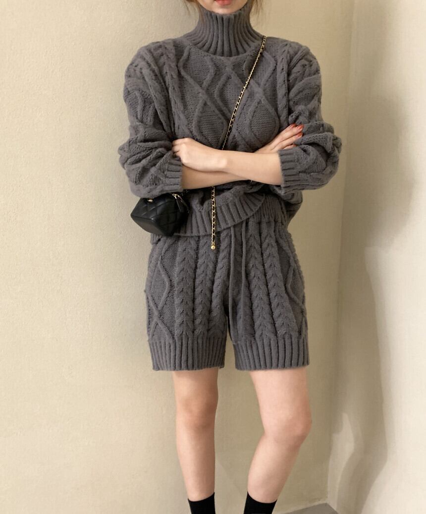 2点セット セットアップ 上下セット セーター 長袖 ハイネック プルオーバー ミディアム丈 ショートパンツ ポケット かわいい 大人可愛い きれいめ シンプル 上品 おしゃれ レトロ かっこいい カジュアル こなれ感 個性的 主役級 存在感 ラフ 抜け感 秋 冬 ベーシック ナチュラル キュート クール メンズライク 無地 女性用 レディース ママ OL 通勤 学生 通学 デート お出かけ お泊まり 女子会 旅行 休日 カフェ ショッピング コンパ 普段使い イベント 着回し 重ね着 ワンサイズ モテ
