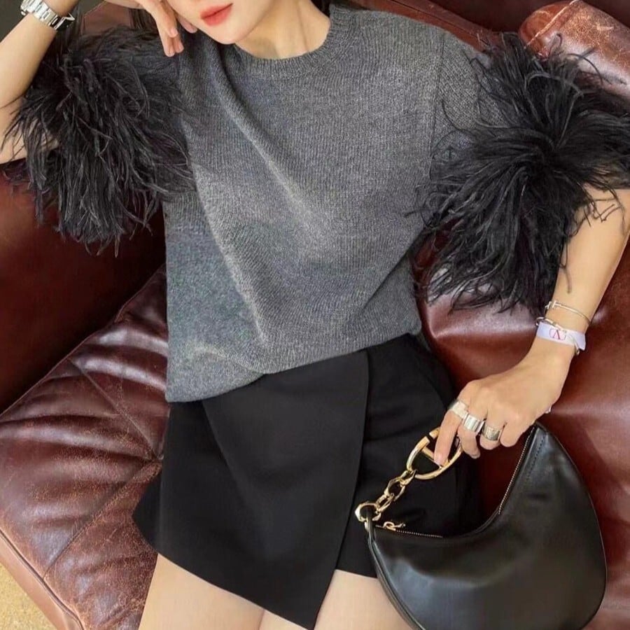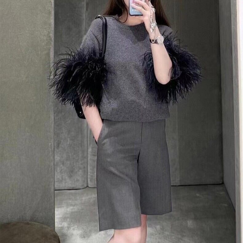 レディース トップス ニット 半袖 クルーネック 大人可愛い きれいめ おしゃれ かっこいい ガーリー クール 存在感 フォーマル 都会的 ロマンティック 無地 秋 冬 通勤 デート お出かけ お泊まり パーティー イベント 旅行 レストラン 公園 女子会 休日 ホテル ショッピング コンサート ライブ カフェ 韓国 コーデ 楽ちん プレゼント 普段使い 着回し モテ インスタ映え S M L ダークグレー