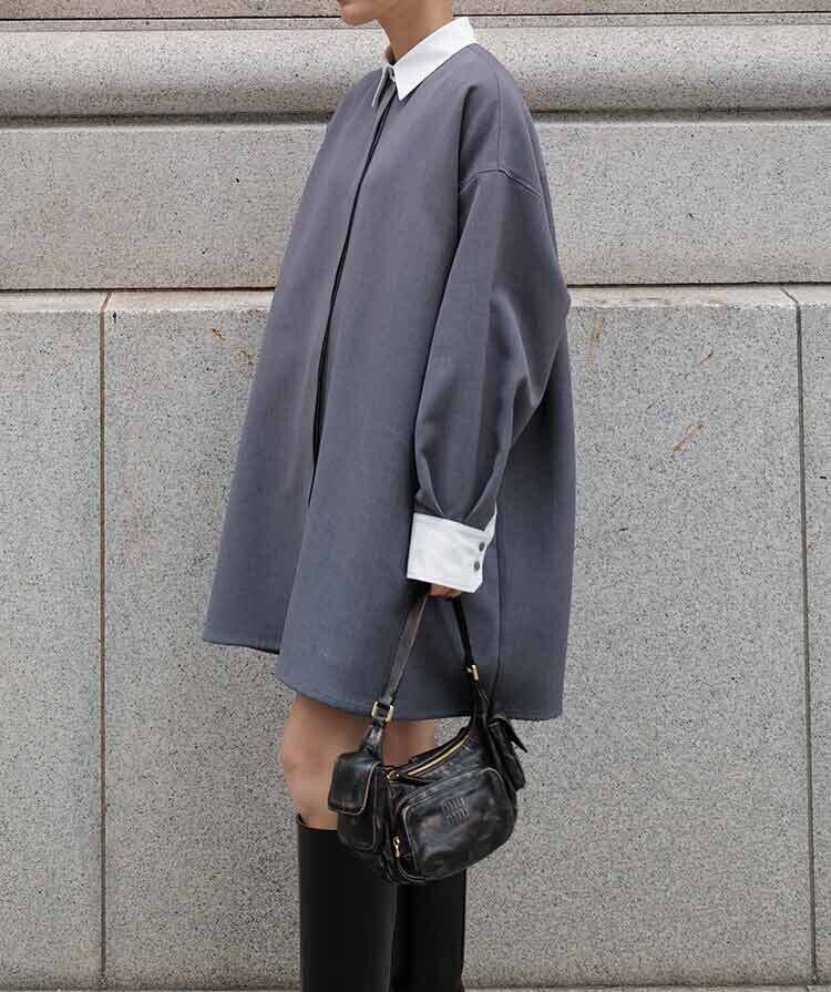 レディース ワンピース シャツワンピ 膝上 長袖 レギュラースリーブ 襟付き ラペル ワイド Aライン オーバーサイズ ストリート タック 前開き ボタン 綿 ポリエステル レーヨン スパンデックス きれいめ シンプル カジュアル おしゃれ かっこいい 個性的 モダン 存在感 無地 夏 ロングシーズン OL 通勤 お出かけ イベント リゾート 女子会 休日 バカンス ショッピング 美脚 普段使い S M L 黒 グレー