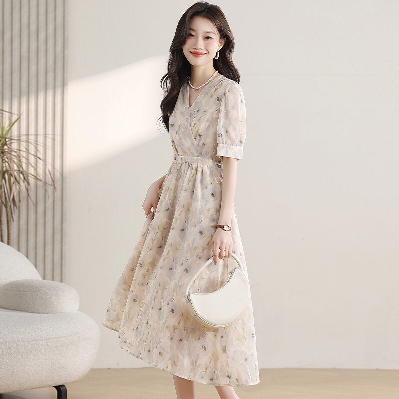 レディース ワンピース フレアスカート ミモレ 長袖 レギュラースリーブ Vネック フレア Aライン フェミニン プリーツ レース ウエストマーク ハイウエスト スプライシング 大人可愛い カジュアル おしゃれ レトロ 個性的 存在感 キュート 花柄 夏 通勤 お出かけ イベント リゾート 旅行 女子会 休日 バカンス ショッピング 発表会 コンサート 普段使い S M L XL 2XL ベージュ