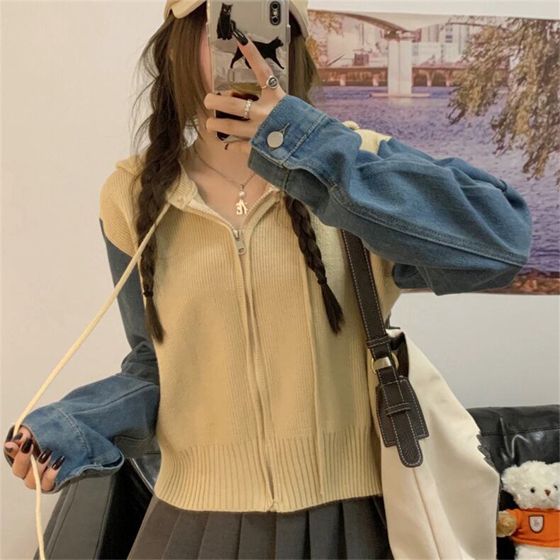 トップス フーディー パーカー 長袖 ボリューム袖 前開き ファスナー ショート丈 ニット デニム 異素材ミックス かわいい 可愛い 大人可愛い きれいめ シンプル レトロ 上品 おしゃれ かっこいい カジュアル こなれ感 個性的 主役級 ラフ 存在感 抜け感 ベーシック ナチュラル クール メンズライク 無地 女性用 レディース ママ OL 通勤 オフィス 学生 通学 デート お出かけ お泊まり 女子会 旅行 休日 カフェ ショッピング コンパ 普段使い デイリー 着回し 重ね着 ワンサイズ トレンド