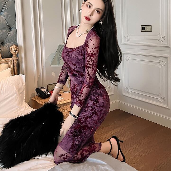 ワンピース ミディアム丈ワンピース 長袖 タイトワンピース 透け感 マーメードスカート ミディアム丈 タイト かわいい 大人可愛い きれいめ シンプル 上品 おしゃれ レトロ かっこいい カジュアル こなれ感 個性的 主役級 存在感 抜け感 春 夏 ベーシック ナチュラル クール エレガント 女性用 レディース ママ デート お出かけ お泊まり 女子会 旅行 休日 カフェ ショッピング コンパ 普段使い デイリー イベント パーティー 二次会 着回し 重ね着 脚長 S M L XL トレンド モテ