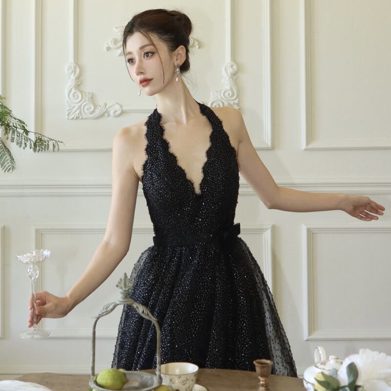 ドレス パーティー 演奏会 発表会 ステージ 舞台 キャバ 衣装 ラウンジ クラブ ショート 袖なし ホルターネック プリンセスライン Aライン プリーツ レース 刺繍 チュール ウエストマーク ハイウエスト 透け感 スパンコール メッシュ スパンデックス 可愛い カジュアル 上品 おしゃれ 存在感 ゴージャス 水玉 スパンコール パーティー イベント ホテル 光沢感 シーズンレス 二次会 披露宴 パーティー 発表会 舞台 キャバ ラウンジ クラブ S M L 黒