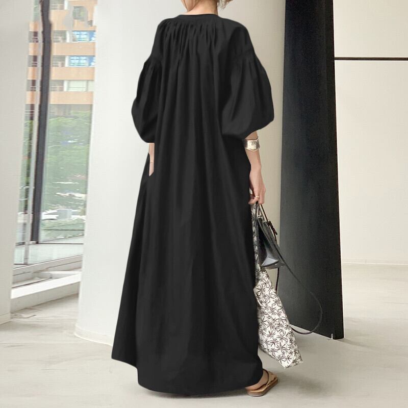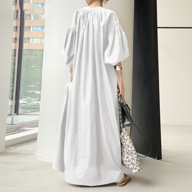 色違いの白、黒、カーキは、ナチュラルで都会的な印象を与え、普段使いにも最適です。個性的でレトロな雰囲気を持つこちらのワンピースは、あなたのコーディネートを楽ちんに仕上げてくれます。