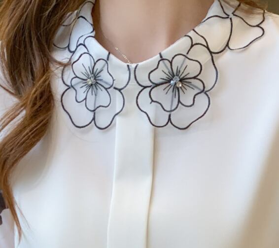 大人可愛いデザインのレディースブラウスが登場!丸襟と花柄襟のコンビネーションがフェミニンな印象を与えます。レギュラー丈とストレートなシルエットがどんなボトムスとも合わせやすく、シンプルで上品なファッションを楽しめます。タックやレース、刺繍ディテールが存在感を高め、カジュアルから特別なイベントまで幅広く活躍するアイテムです。