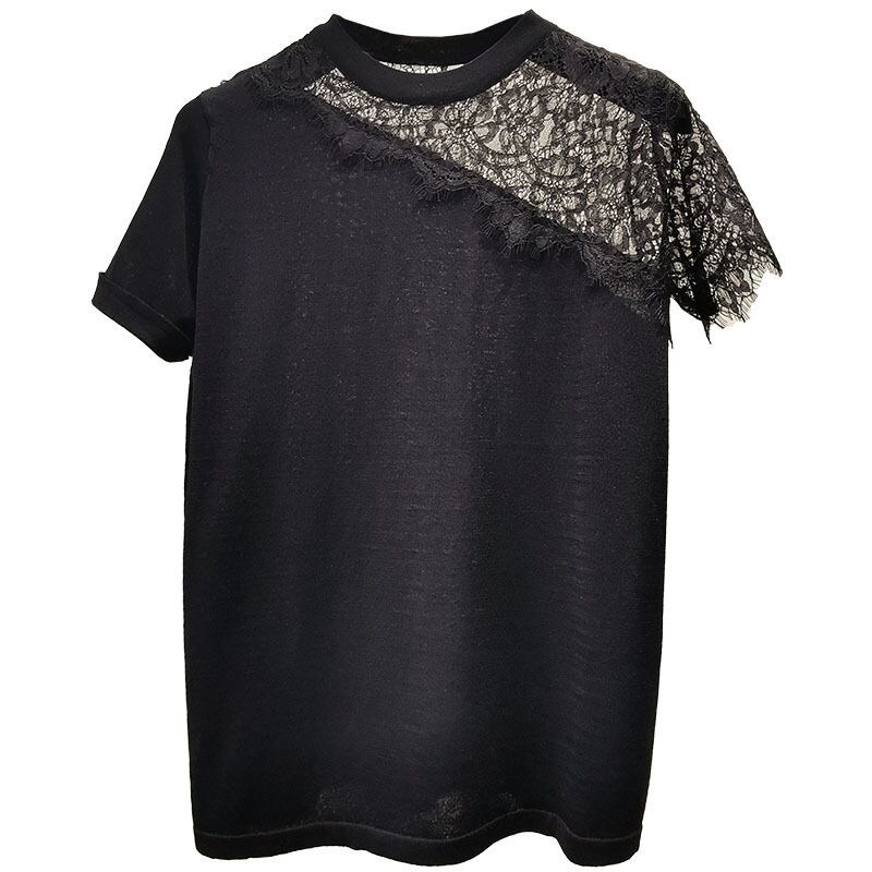 レディース カットソー レギュラー丈 半袖 レギュラースリーブ クルーネック アシンメトリー フェミニン レース チュール 透け感 シースルー 切り替えデザイン 薄手 刺繡 かわいい カジュアル おしゃれ レトロ 個性的 存在感 無地 ストライプ 夏 お出かけ リゾート 旅行 休日 バカンス ショッピング 体型カバー フリーサイズ 黒 ストライプ