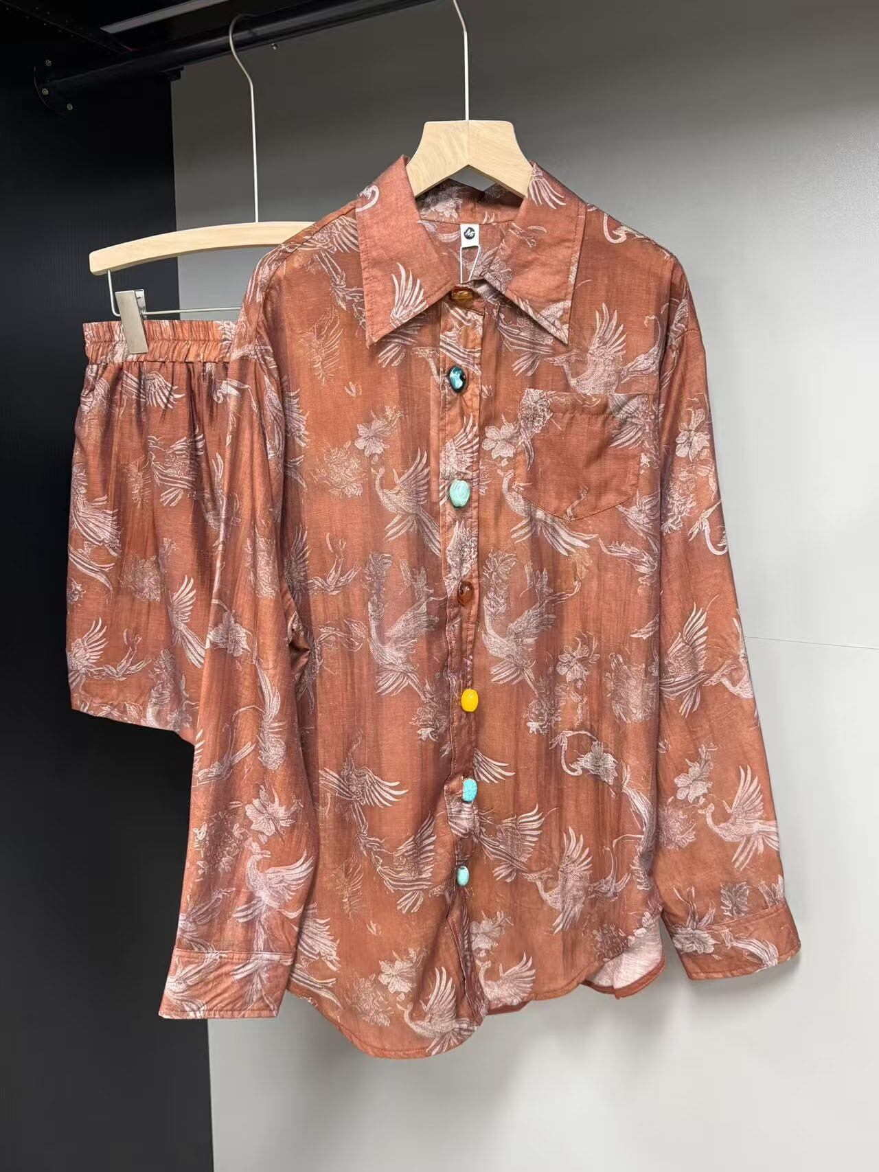 2点セット レディース トップス ボトムス シャツ ショートパンツ ショート 半袖 襟付き ポケット ボタン 大人可愛い きれいめ カジュアル おしゃれ かっこいい レトロ ラフ ガーリー クール 都会的 ナチュラル プリント 春 夏 デート お出かけ お泊まり アウトドア キャンプ リゾート 旅行 海 プール レストラン ビーチ 公園 女子会 休日 ホテル ショッピング コンサート ライブ カフェ 韓国 コーデ 楽ちん プレゼント 美脚 普段使い 着回し 清楚 インスタ映え フリーサイズ ブラウン