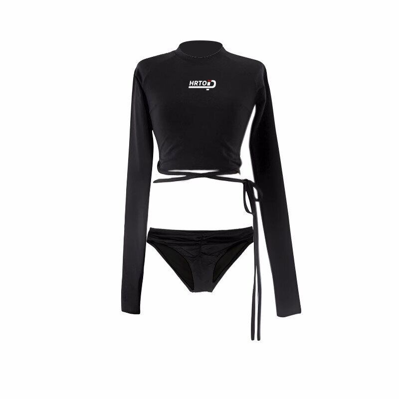 水着 ビキニ タンキニ 体型カバー ラッシュガード セパレート 長袖 リボン セット シンプル カジュアル 大人っぽい 存在感 個性的 かっこいい 無地 リゾート 旅行 温泉 プール 夏 海 美脚 体型カバー S M L XL ブラック