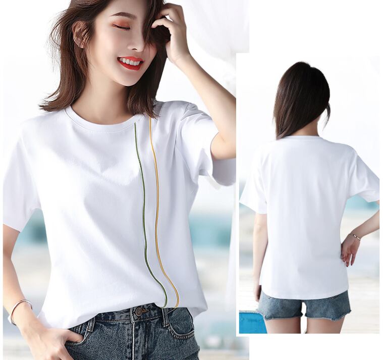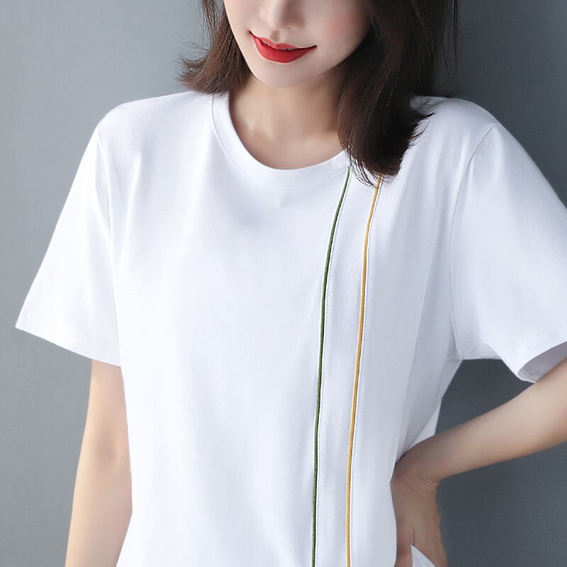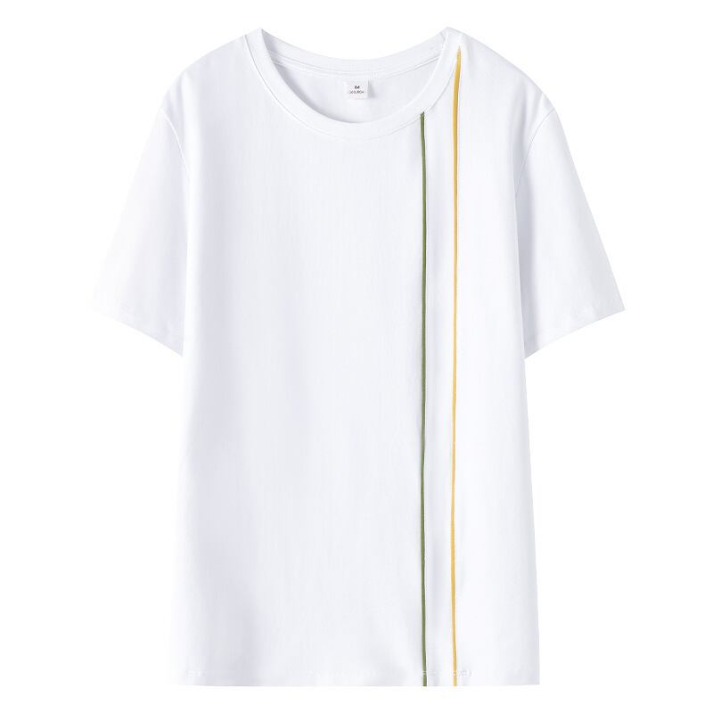 レディース トップス シャツ ショート 半袖 レギュラースリーブ クルーネック ストレート スマート ストリート レインボーライン 薄手 綿 スパンデックス 大人可愛い カジュアル おしゃれ レトロ 個性的 無地 夏 お出かけ アウトドア キャンプ イベント 旅行 海 プール ビーチ ジム 公園 女子会 休日 バカンス M L XL 2XL 3XL 4XL 白 黒