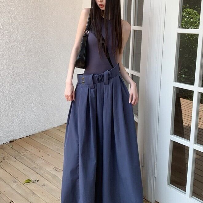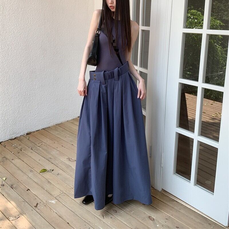 『2点セット レディース スカート トップス ボトムス シャツ ロング ノースリーブ クルーネック』は、大人可愛いデザインが魅力のアイテムです。無地でシンプルながらもおしゃれでかっこいい印象を与え、フォーマルからカジュアルまで幅広いシーンで活躍します。春や夏の通勤、デート、お出かけ、休日のリラックスタイムにもぴったりです。インスタ映えする美しいブルーは、韓国風コーデにもマッチします。