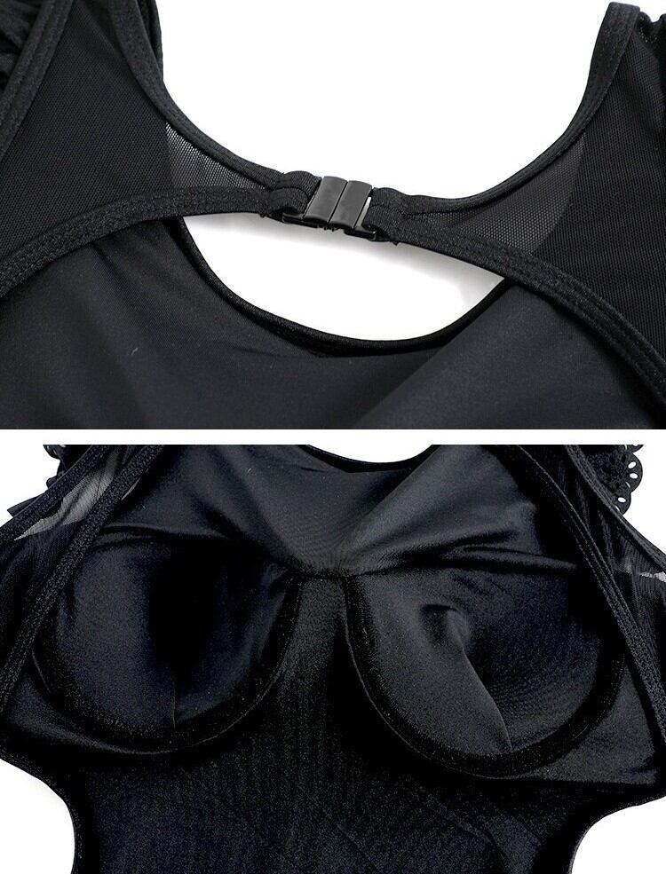 水着 レディース ワンピース パッド付き レース 大人可愛い きれいめ 大人っぽい おしゃれ お洒落 主役級 存在感 ガーリー クール モード系 モダン かっこいい セクシー 無地 リゾート 旅行 温泉 プール 夏 海 美脚 韓国 モテ 背中見せ インスタ映え M L XL ブラック