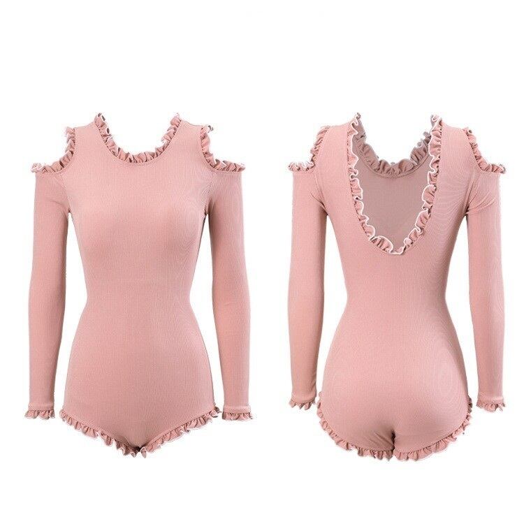 水着 レディース ワンピース パッド付き 長袖 レース かわいい 大人可愛い きれいめ 大人っぽい おしゃれ お洒落 主役級 存在感 ガーリー クール かっこいい 無地 リゾート 旅行 温泉 プール 夏 海 美脚 韓国 モテ 背中見せ インスタ映え M L XL ピンク