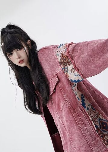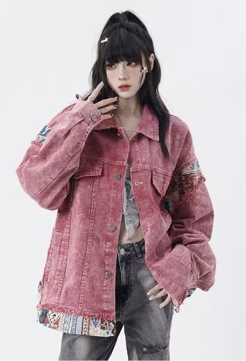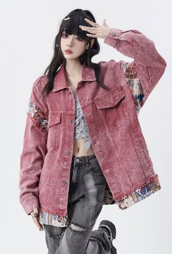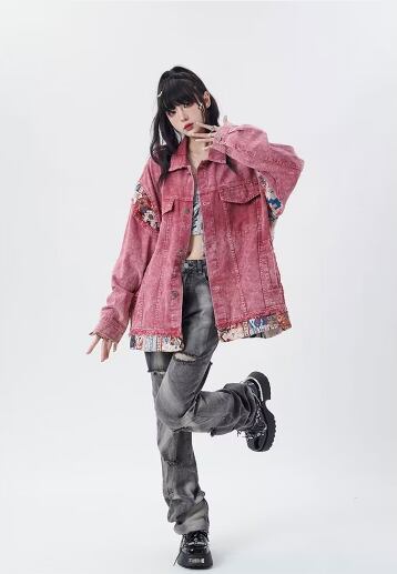 メンズ レディース トップス ジャケット 上着 前開き デニムジャケット Gジャン 長袖 襟付き 角襟 ストリート 2way ヴィンテージ アメカジ 切り替えデザイン 異素材ミックス コットン ポリエステル パッチワーク 春 秋 ロングシーズン 授業参観 ペア 男女兼用 カップル 通勤 学生 学校 通学 デート お出かけ アウトドア コンサート ライブ 重ね着 お揃い 普段使い 着回し 定番 M L XL 2XL ピンク
