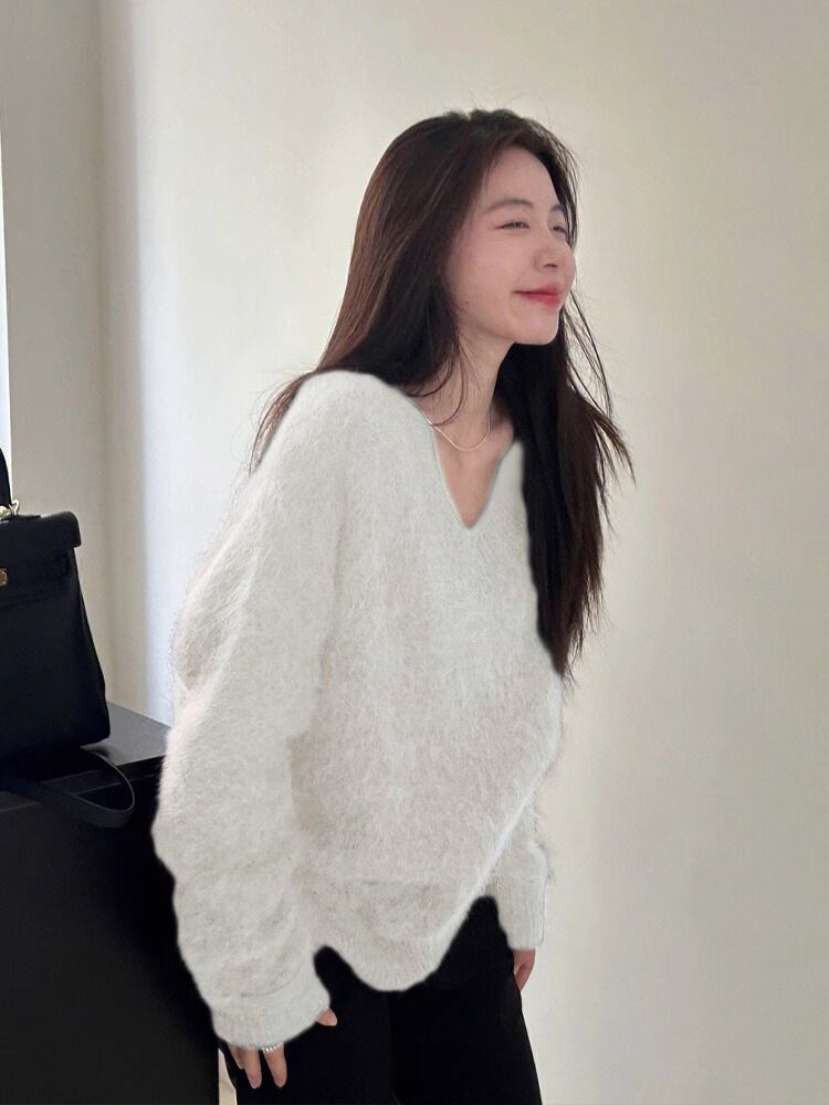 トップス セーター 長袖 Vネック プルオーバー ミディアム丈 萌え袖 ふわふわ かわいい 可愛い 大人可愛い きれいめ シンプル 上品 おしゃれ かっこいい カジュアル こなれ感 個性的 主役級 ラフ ルーズ 存在感 抜け感 秋 冬 ベーシック ナチュラル クール 女性用 レディース OL 通勤 オフィス 学生 通学 デート お出かけ お泊まり 女子会 旅行 アウトドア 休日 カフェ ショッピング コンパ 二次会 普段使い デイリー 着回し 重ね着 S M L XL トレンド ゆったり 暖かい モテ