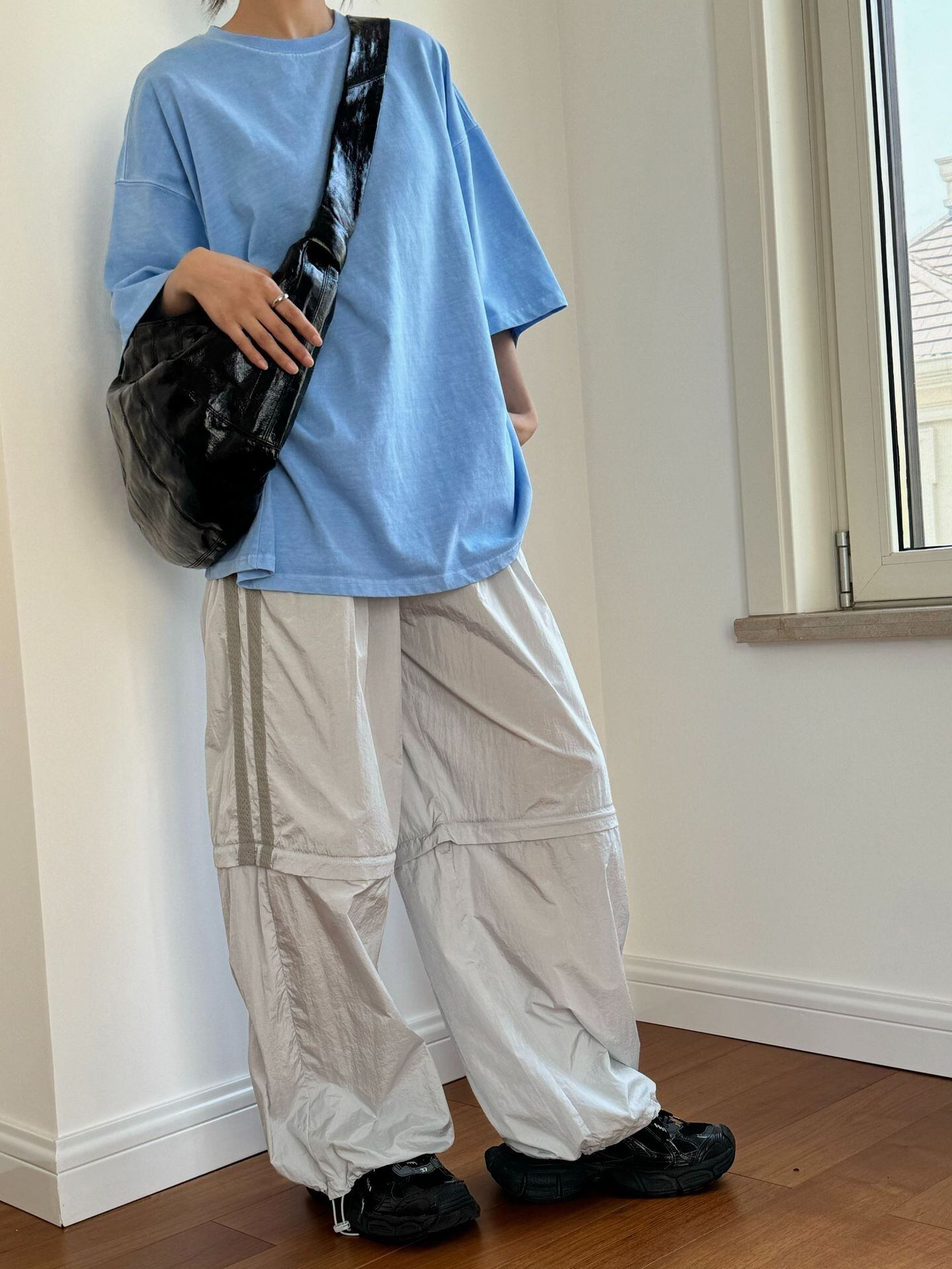 レディース パンツ ボトムス ストレートパンツ ロング ハーフ 薄手 ナイロン 大人可愛い きれいめ シンプル カジュアル おしゃれ かっこいい ラフ ボーイッシュ スポーティー クール 都会的 無地 春 夏 秋 通勤 デート お出かけ お泊まり アウトドア キャンプ 旅行 海 プール 公園 女子会 休日 韓国 コーデ 楽ちん プレゼント 普段使い 着回し インスタ映え S M ライトグレー ネイビー
