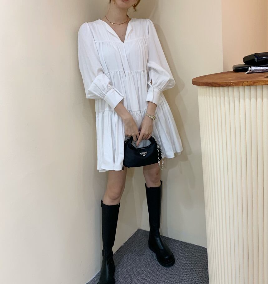 レディース ワンピース ショート 長袖 Vネック Aライン プリーツ 大人可愛い きれいめ おしゃれ かっこいい ガーリー クール 都会的 ナチュラル 無地 春 秋 通勤 デート お出かけ お泊まり イベント 旅行 レストラン 公園 女子会 休日 ホテル ショッピング コンサート ライブ カフェ 韓国 コーデ 楽ちん プレゼント 普段使い 着回し モテ 清楚 インスタ映え ゆったり フリーサイズ ホワイト ブラック カーキ
