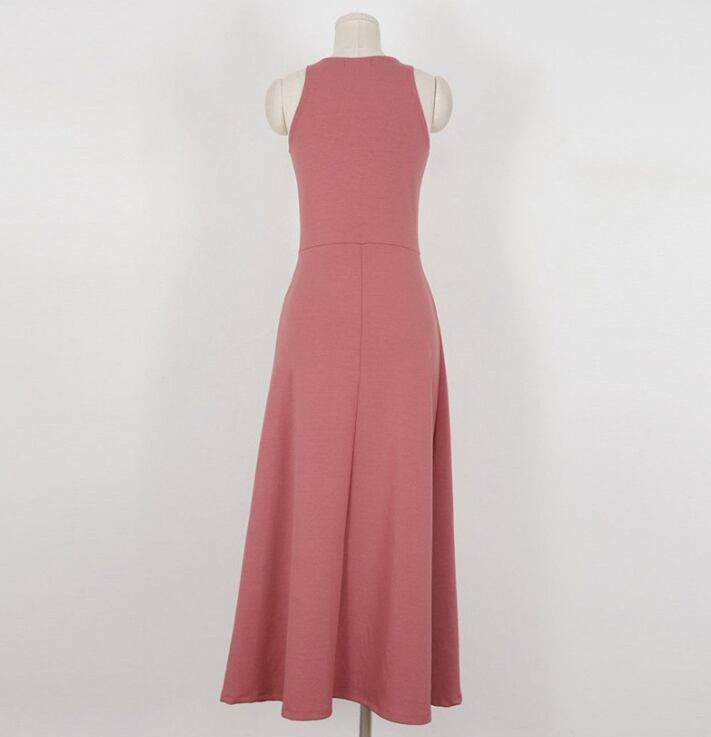 レディース ワンピース ロングスカート ロング ノースリーブ クルーネック タイト スリム ハイウエスト 薄手 コットン モダール ポリエステル スパンデックス きれいめ シンプル カジュアル 上品 おしゃれ エレガント 存在感 無地 夏 お出かけ お泊まり イベント リゾート 旅行 海 プール ビーチ 公園 女子会 休日 バカンス 高原 ガーデン ショッピング カフェ 普段使い モテ フリーサイズ ピンク
