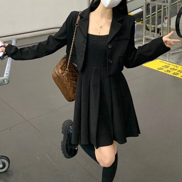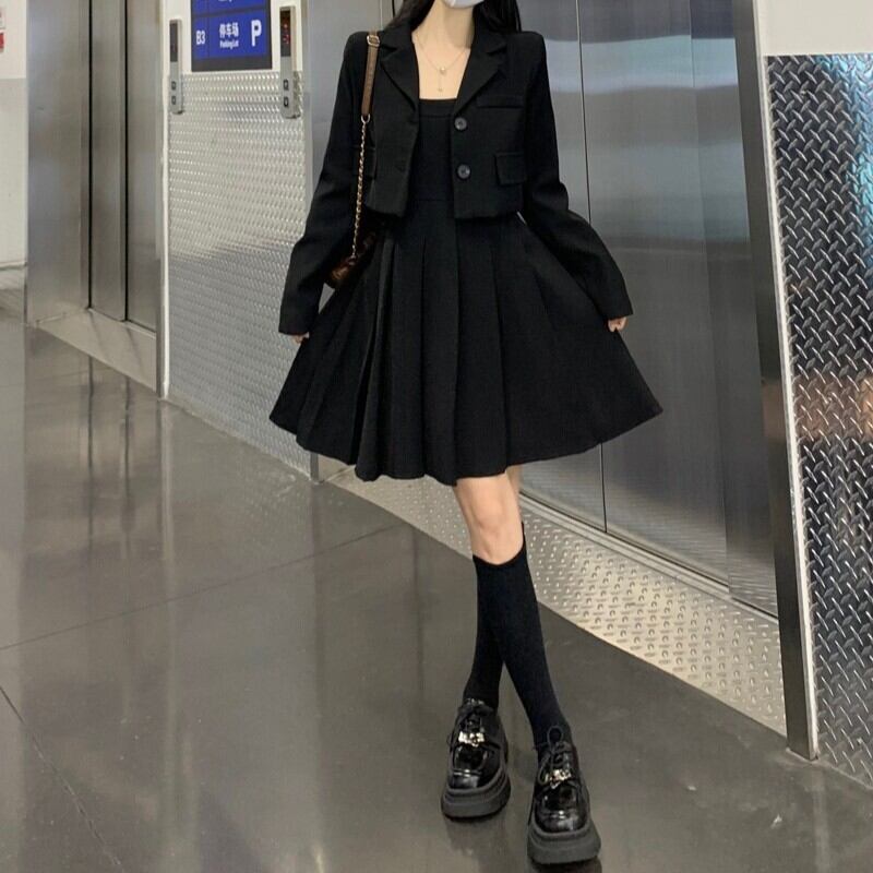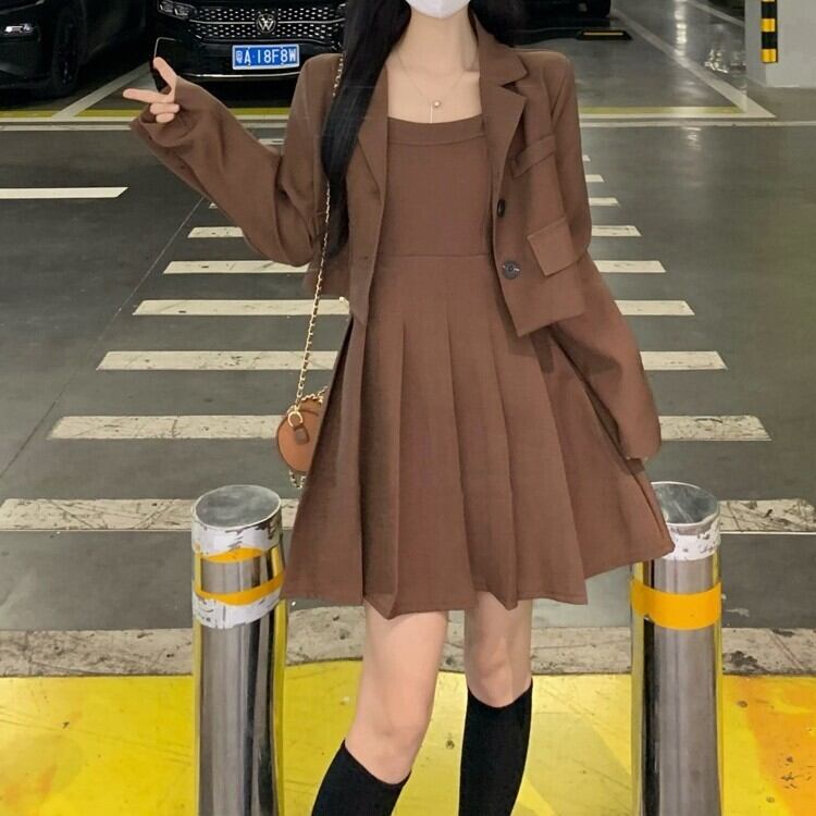 2点セット レディース ジャケット ワンピース ショート ノースリーブ 長袖 スクエアネック 襟付き スリム Aライン プリーツ ポケット ボタン 大人可愛い きれいめ おしゃれ かっこいい ガーリー 都会的 無地 春 夏 秋 通勤 デート お出かけ お泊まり イベント 旅行 公園 女子会 休日 ホテル ショッピング コンサート ライブ カフェ 韓国 コーデ 楽ちん プレゼント 美脚 普段使い 着回し モテ 清楚 インスタ映え M L XL 2XL 3XL 4XL 5XL 大きいサイズ ブラック ブラウン