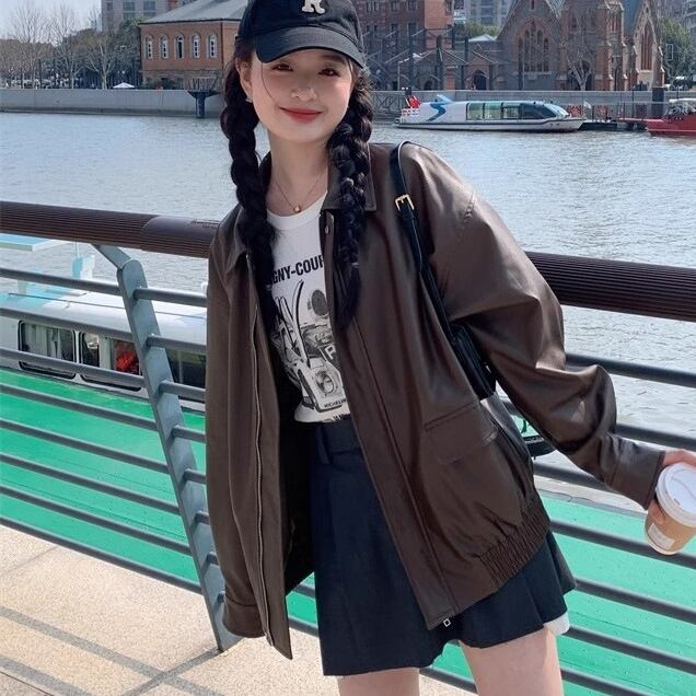 アウター ジャケット フェイクレザージャケット 長袖 襟付き 前開き ファスナー ボタン ポケット ミディアム丈 かわいい 大人可愛い きれいめ シンプル 上品 おしゃれ レトロ かっこいい カジュアル こなれ感 個性的 主役級 存在感 抜け感 冬 ベーシック ナチュラル クール メンズライク 無地 女性用 レディース OL 通勤 学生 通学 デート お出かけ お泊まり 女子会 旅行 休日 カフェ ショッピング コンパ 普段使い イベント 着回し M L XL 2XL トレンド 高級感 高見え モテ
