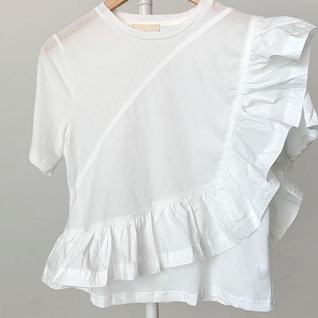 レディース トップス Tシャツ ショート 半袖 フレアスリーブ ラウンドネック クルーネック フレア ストレート アシンメトリー フェミニン レース 切り替えデザイン クイーンスタイル ポリエステル 大人可愛い カジュアル 上品 おしゃれ 存在感 無地 夏 通勤 お出かけ アウトドア キャンプ イベント リゾート 旅行 海 プール 公園 女子会 休日 バカンス ショッピング 発表会 コンサート 楽ちん 体型カバー 普段使い 清楚 S M L XL 白