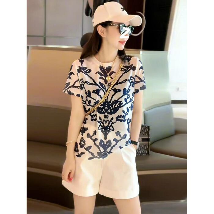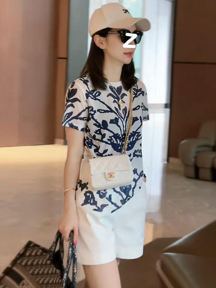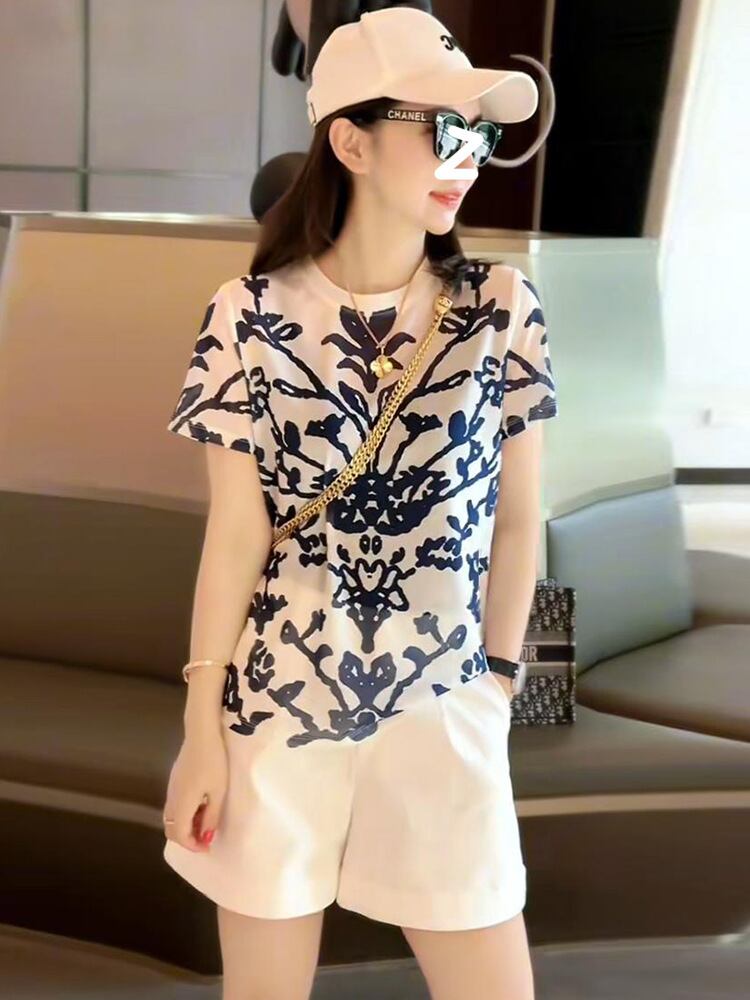 レディース トップス パンツ ショートパンツ Tシャツ スポーツウェア フィットネススーツ ショート 半袖 レギュラースリーブ クルーネック ストレート ポリエステル スパンデックス シンプル カジュアル おしゃれ レトロ ラフ クイーンスタイル 花柄 夏 ロングシーズン アウトドア キャンプ リゾート 旅行 海 プール ビーチ ジム 休日 バカンス 普段使い M L XL 2XL 3XL 白