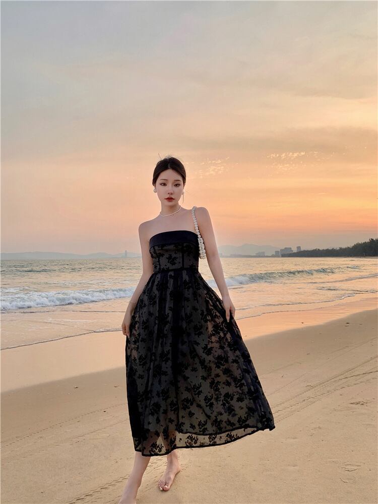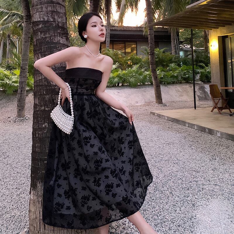 ドレス パーティー 二次会 披露宴 演奏会 発表会 ステージ 舞台 ミモレ 袖なし オフショル プリンセスライン フレア Aライン チューブトップ プリーツ レース チュール ファスナー ハイウエスト 透け感 サテン シアー きれいめ 大人可愛い 上品 おしゃれ レトロ エレガント 花柄 パーティー イベント リゾート 旅行 ホテル フランス風 シーズンレス 二次会 披露宴 パーティー 演奏会 発表会 S M L XL 黒