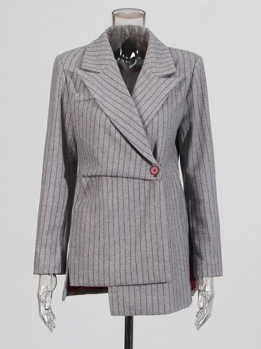 レディース ジャケット スーツ 長袖 Vネック 襟付き ポケット ボタン 大人可愛い きれいめ 上品 おしゃれ かっこいい レトロ クール モード系 エレガント フォーマル 都会的 ストライプ 春 秋 授業参観 通勤 デート お出かけ お泊まり パーティー イベント レストラン 女子会 休日 ホテル カフェ 韓国 コーデ 楽ちん プレゼント 着回し インスタ映え S M L XL 大きいサイズ グレー