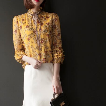 レディース トップス シャツ 長袖 ランタンスリーブ スタンドカラー りぼんタイ フェミニン ふわふわ コットン ポリエステル かわいい 大人可愛い きれいめ シンプル 上品 おしゃれ ガーリー エレガント キュート ロマンティック ナチュラル 花柄 プリント 春 誕生日 二次会 授業参観 ママ オフィス 学生 デート お出かけ イベント 旅行 海 レストラン 公園 女子会 休日 コンサート ライブ お花見 合コン コンパ カフェ 普段使い 着回し 清楚 S M L XL 2XL 3XL 黄色 青