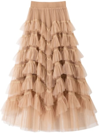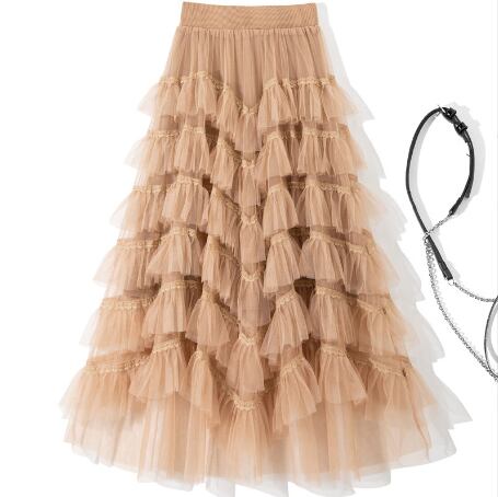 レディース スカート ボトムス フレア ロングスカート レーススカート フルレングス フレア フェミニン レース もこもこ ふわふわ ふっくら ウエストゴム レースアップ 透け感 中厚手 ポリエステル かわいい おしゃれ ガーリー 個性的 プリンセス 学生風 ロマンティック 無地 秋 冬 謝恩会 二次会 授業参観 ママ 学生 デート お出かけ 公園 女子会 ショッピング コンサート ライブ お花見 合コン コンパ 楽ちん 体型カバー 脚長 S M L 茶色 アプリコット