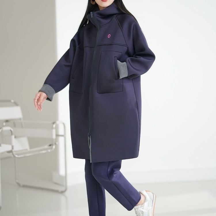 レディース パーカー コート アウター 上着 羽織 前開き フーディーパーカー ミドル丈 長袖 ハイネック フード ストレート 刺繍 ファスナー ポケット 配色 ダブルジップ リバーシブル シンプル カジュアル おしゃれ かっこいい こなれ感 ラフ 個性的 主役級 存在感 無地 春 秋 冬 ママ 10代 20代 30代 40代 学生 お出かけ アウトドア キャンプ 旅行 公園 休日 ショッピング コーデ 体型カバー 普段使い 流行 L XL 2XL 3XL 4XL 大きいサイズ グレー イエロー ブルー